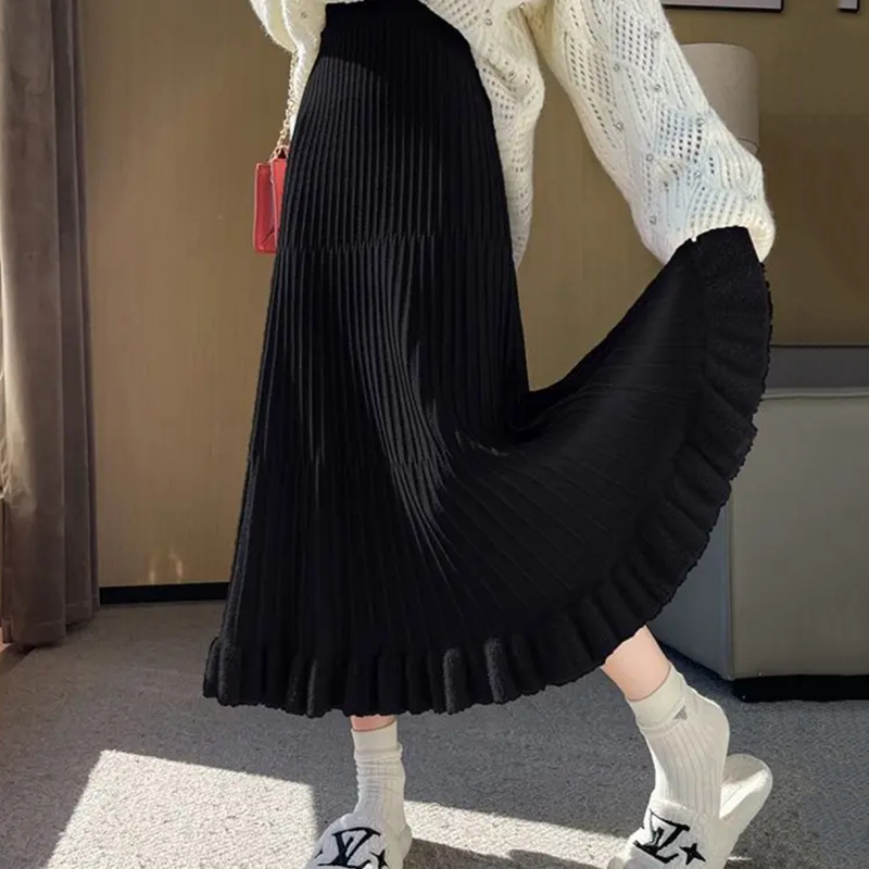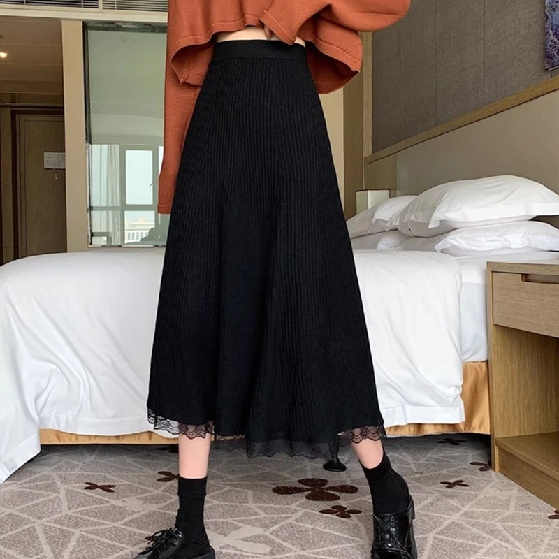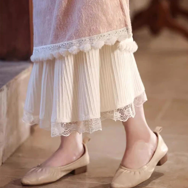 旗袍内搭衬裙百褶半身裙秋冬叠穿复古加绒打底蕾丝纯色大摆半身裙