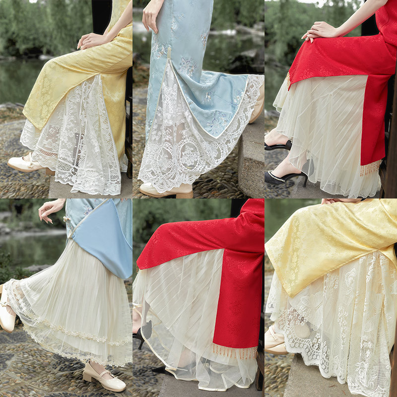 【チャイナドレスの必需品】チャイナドレス専用インナーペチコートスカート、伸縮性のあるレトロで万能な重ね着とボトムスカート