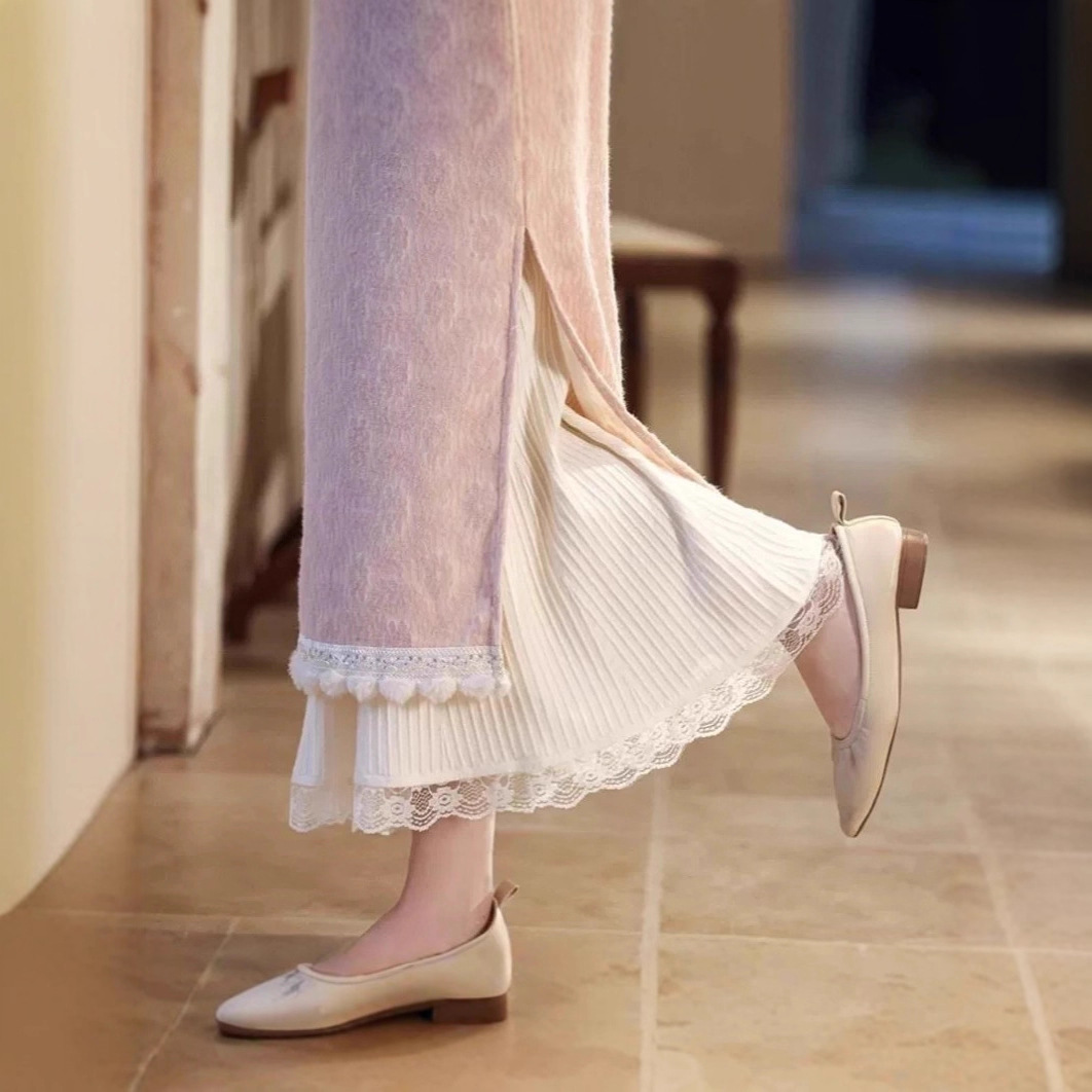 冬季蕾丝花边旗袍内搭叠穿打底裙白色针织防走光复古百搭半身衬裙