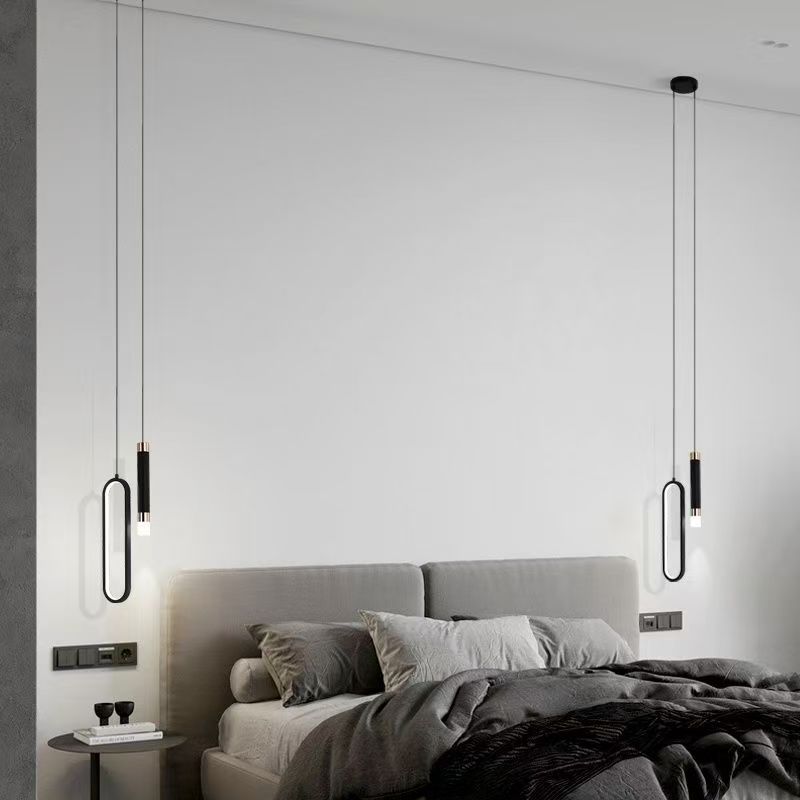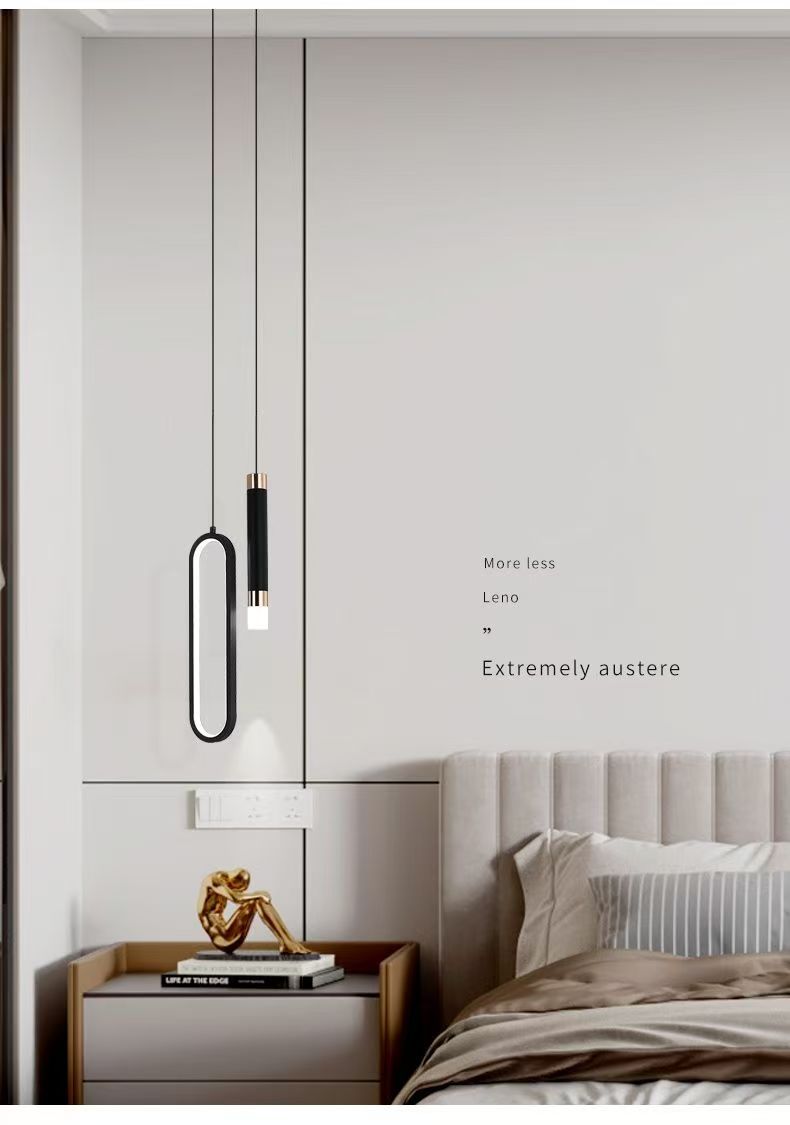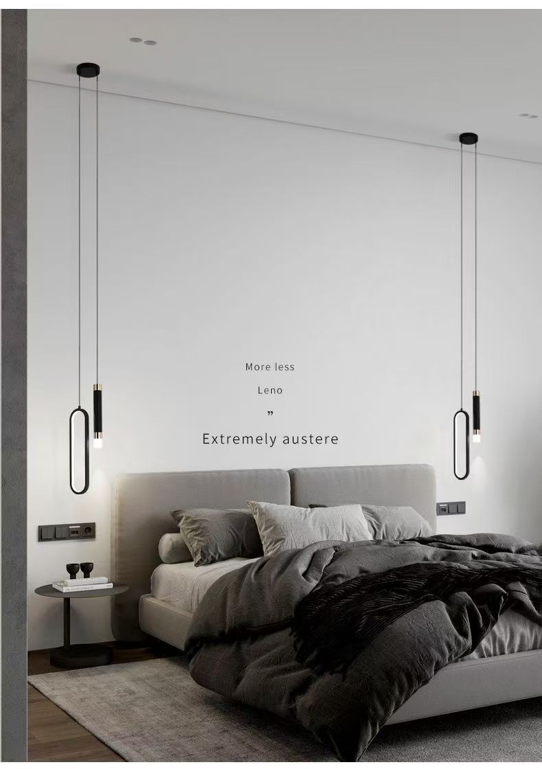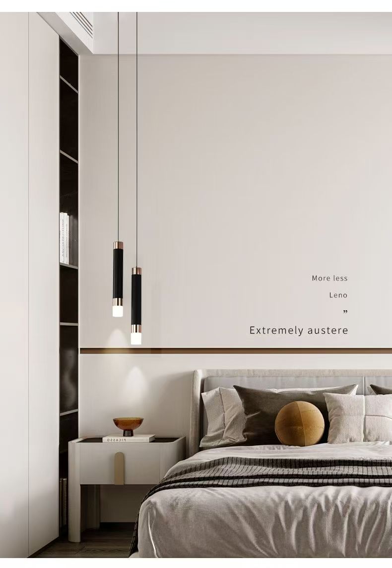 イタリア式の非常にシンプルな寝室のベッドの上のシャンデリアは現代的でシンプルなデザイン感があります。