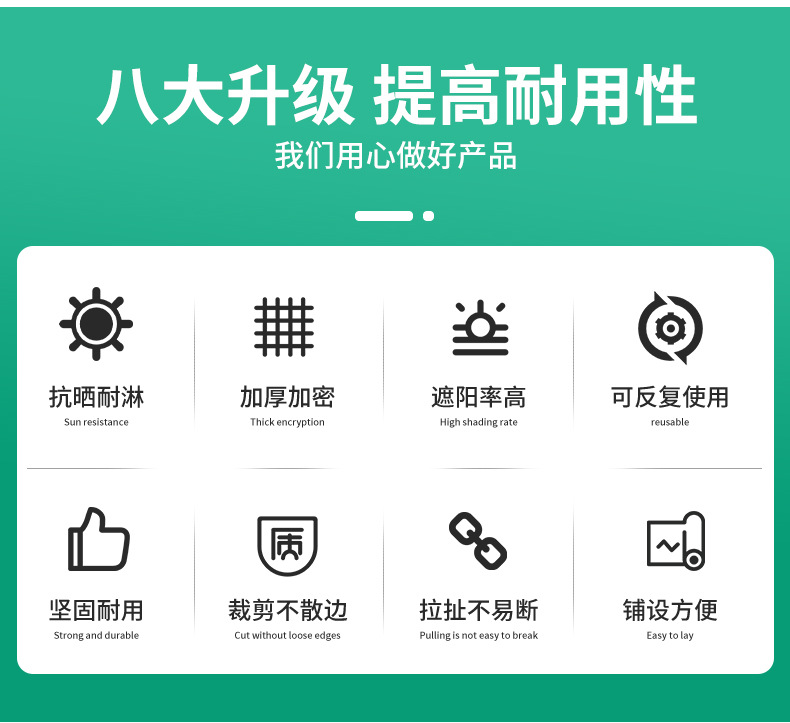 8Mの厚みのある暗号化された高温耐性エッジパンチングブラックサンシェードネットアンチエイジングサンシェードネットガレージルーフシェードネット