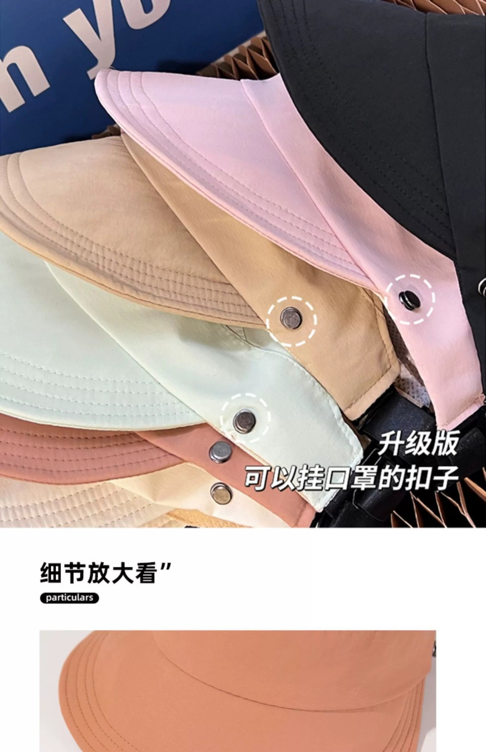 夏の純色の薄いタイプの女子学生は高い馬尾を刺してマスクの日焼け止めの帽子をかけることができます。