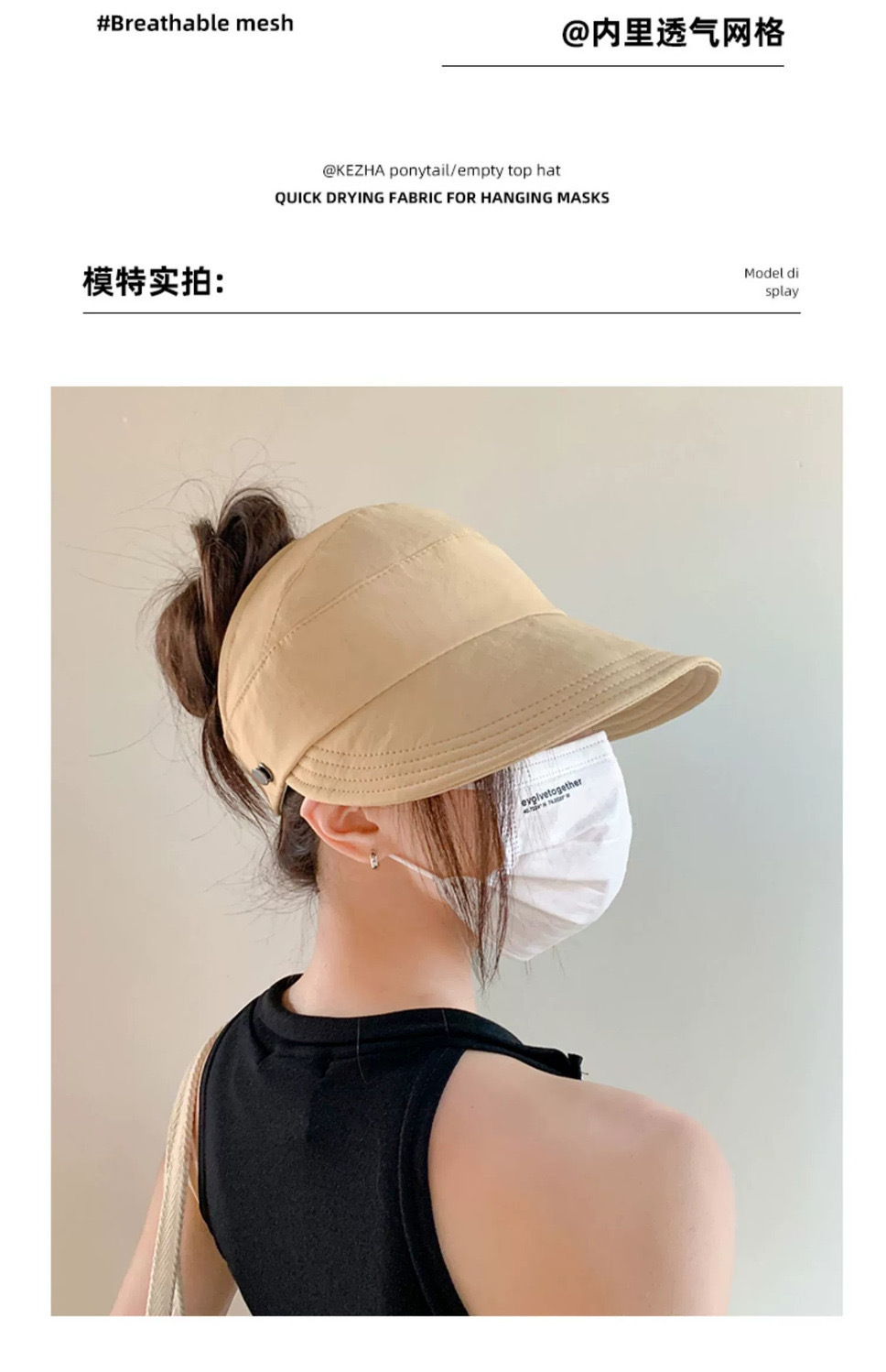 2025新型日焼け止め帽子女性空頂高馬尾鴨舌漁師帽子春夏戸外顔速乾太陽帽子