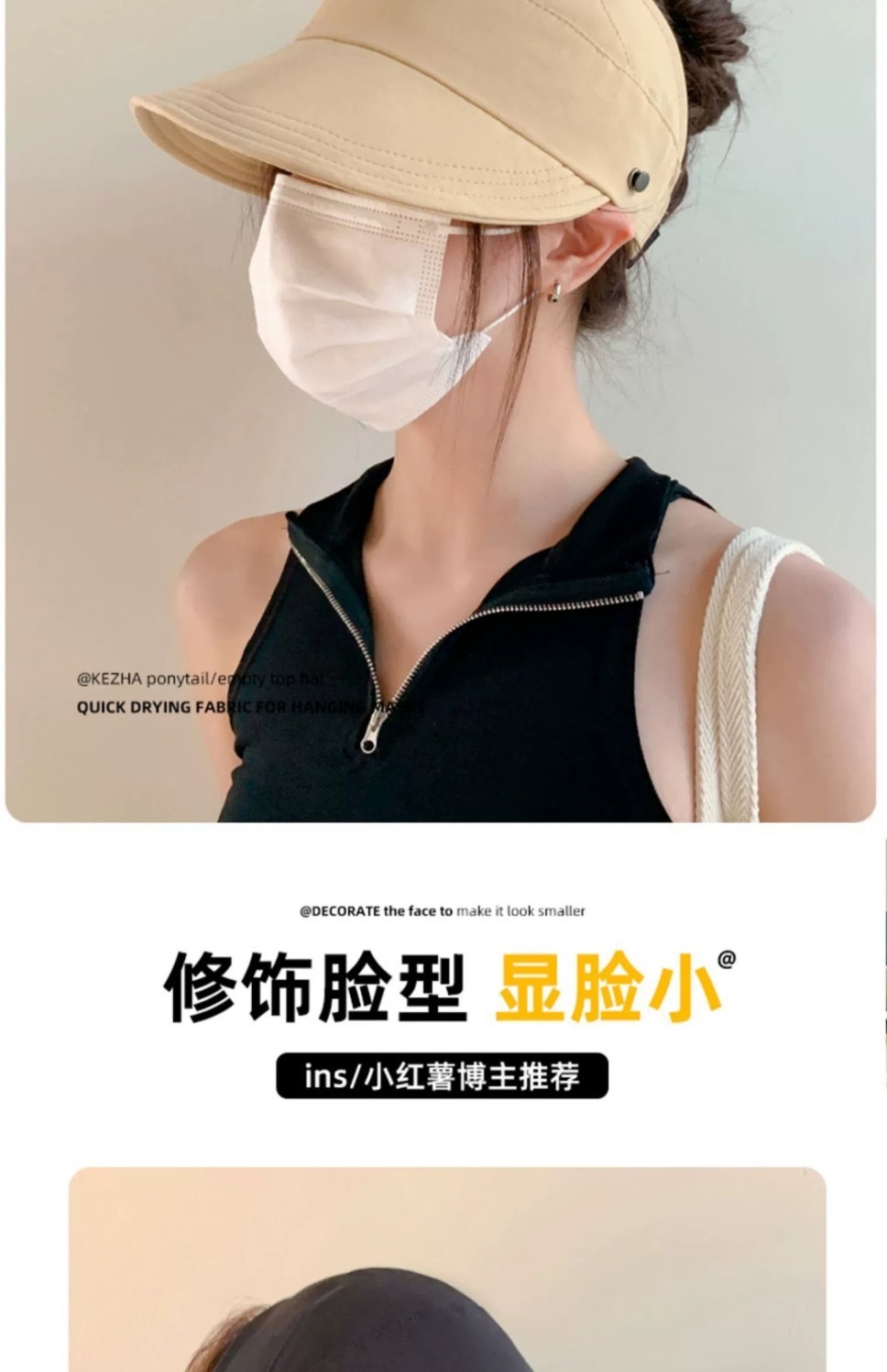 趙露思同金日焼け止め帽子女性馬尾空頂鴨舌帽太陽帽折り畳み可能漁師帽夏日よけ帽