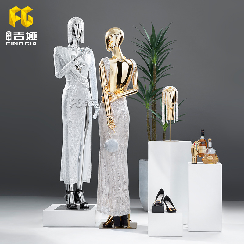 吉亜モデル道具婦人服店ショーウインドー展示棚メッキ全身半身人台平肩高級人形