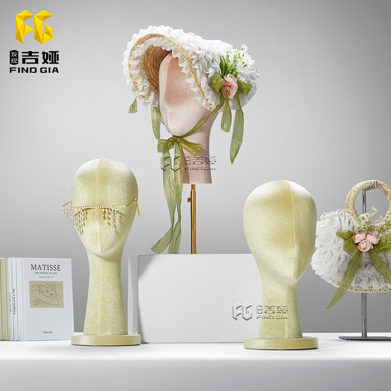 吉亜女モデルの頭台のアクセサリーは帽子のメガネを飾って道具のかつらを展示します。