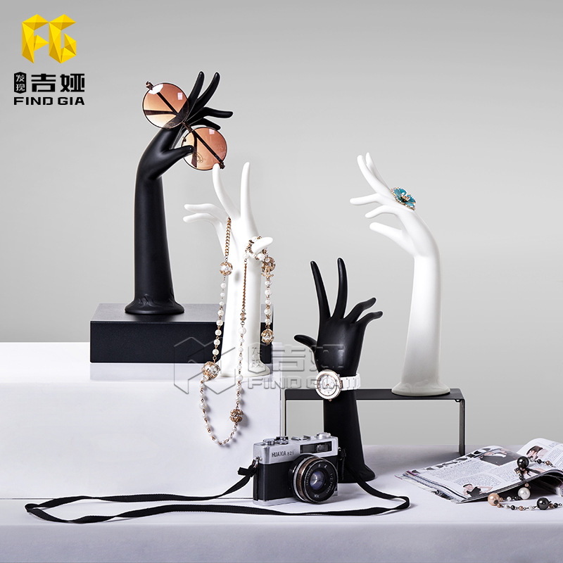 ジーアの手の型の道具のブレスレットの指輪のブレスレットの女性は手の型の偽の手の模型の白黒のアクセサリの置物をシミュレーションします。