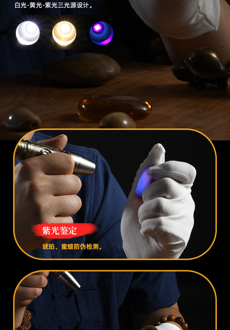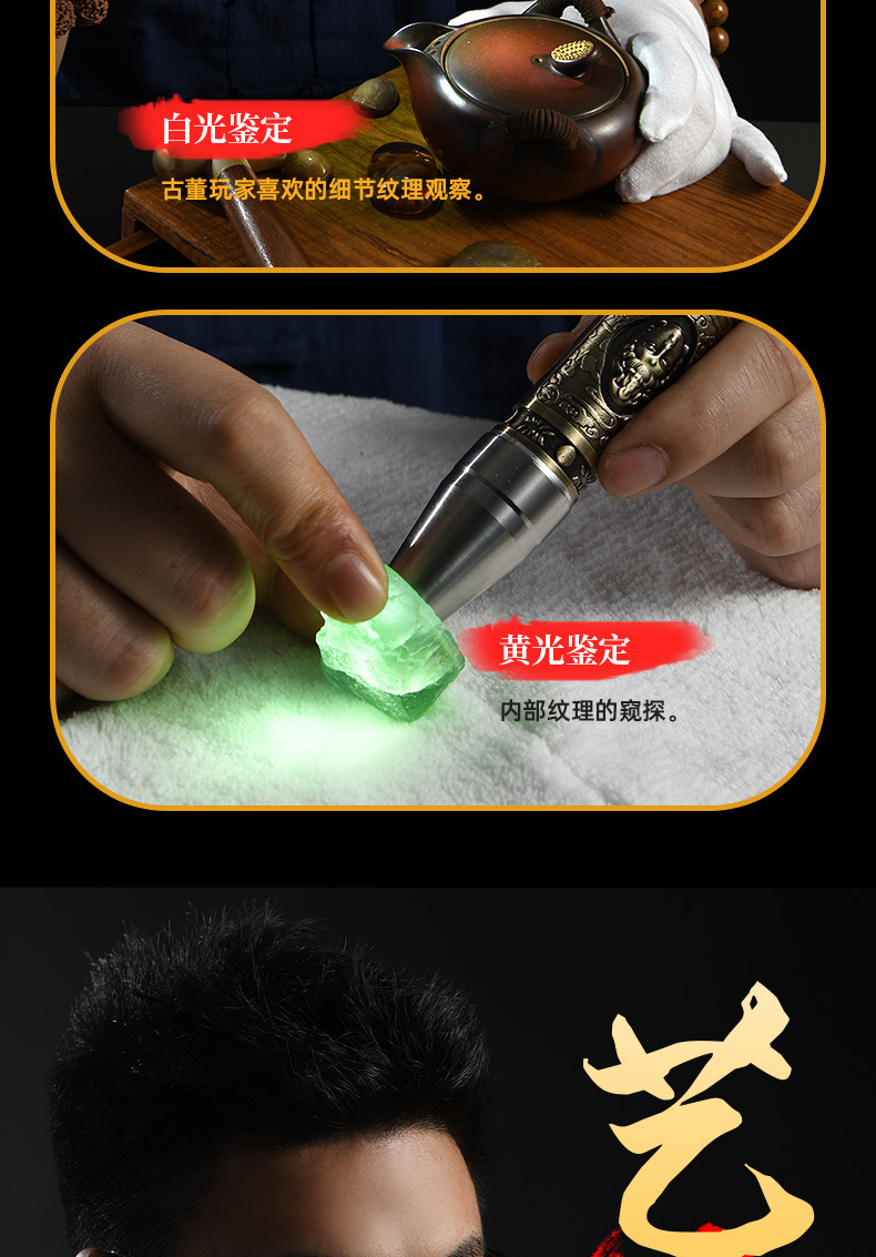 玉石専用懐中電灯強光鑑定照翡翠検札専門宝飾品紫光照玉充電可能ギフトランプ