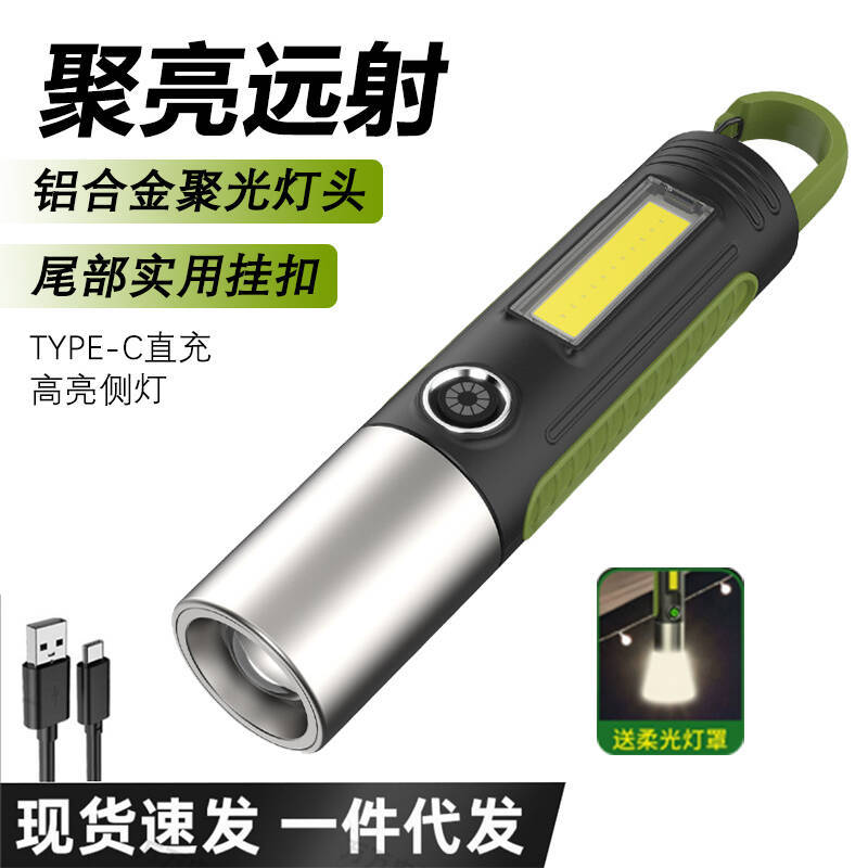 国境を越えた新型強光懐中電灯屋外多機能遠射照明懐中電灯LED携帯作業側灯