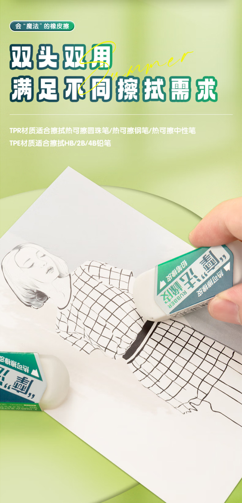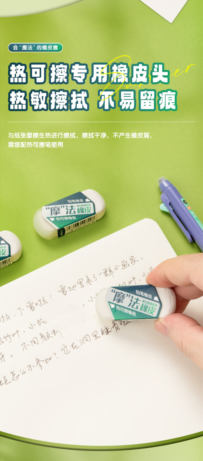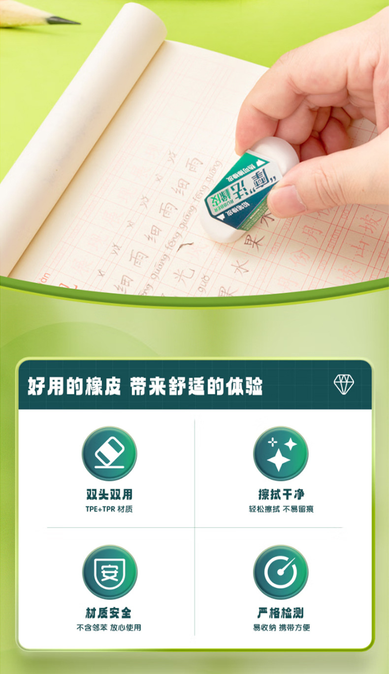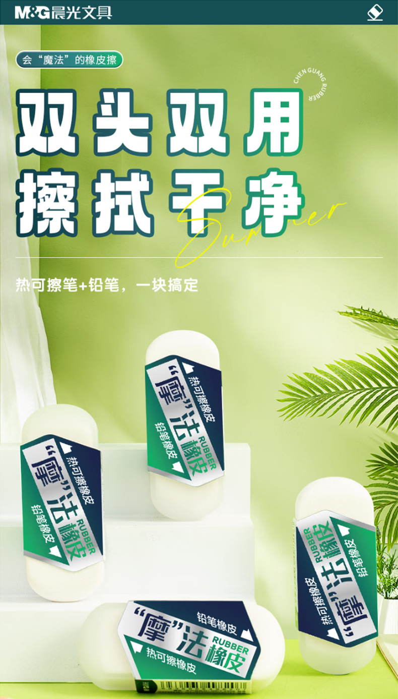 晨光AXP963JS魔法橡皮擦双头两用橡皮擦热可擦橡皮无碎屑易擦橡皮