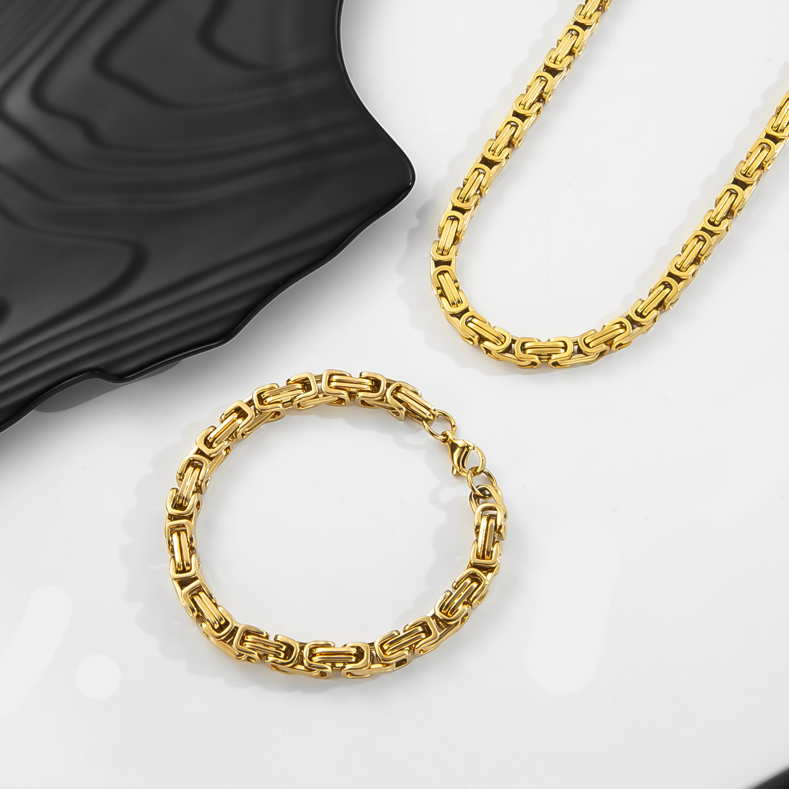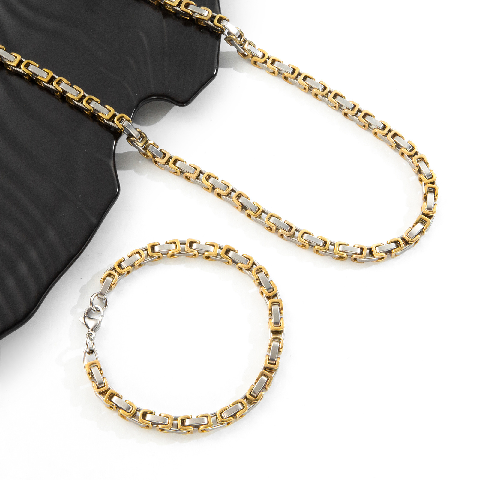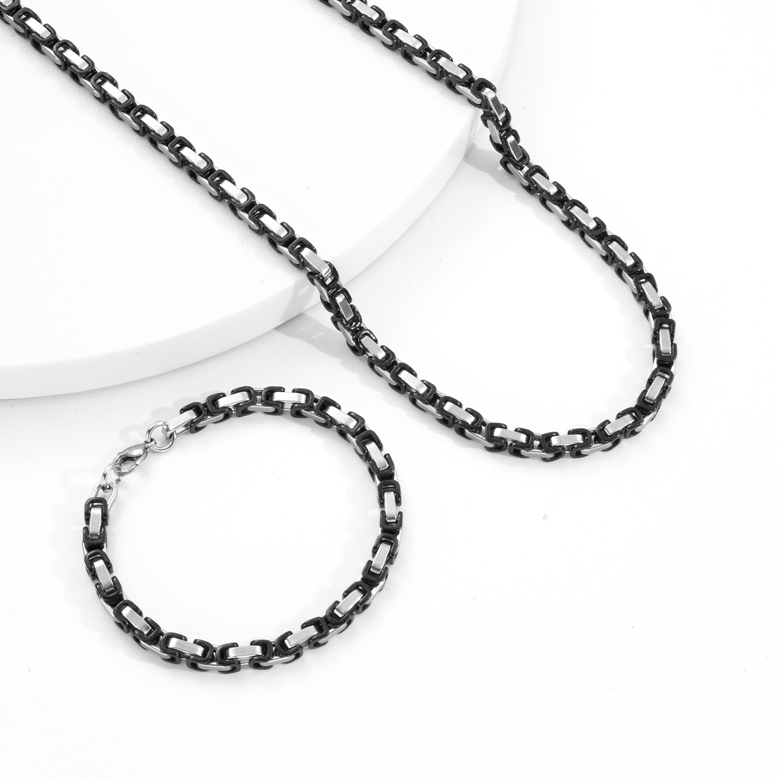 产品名称:供应欧美热销不锈钢帝王链时尚简约拜占庭手链项链饰品配链套装