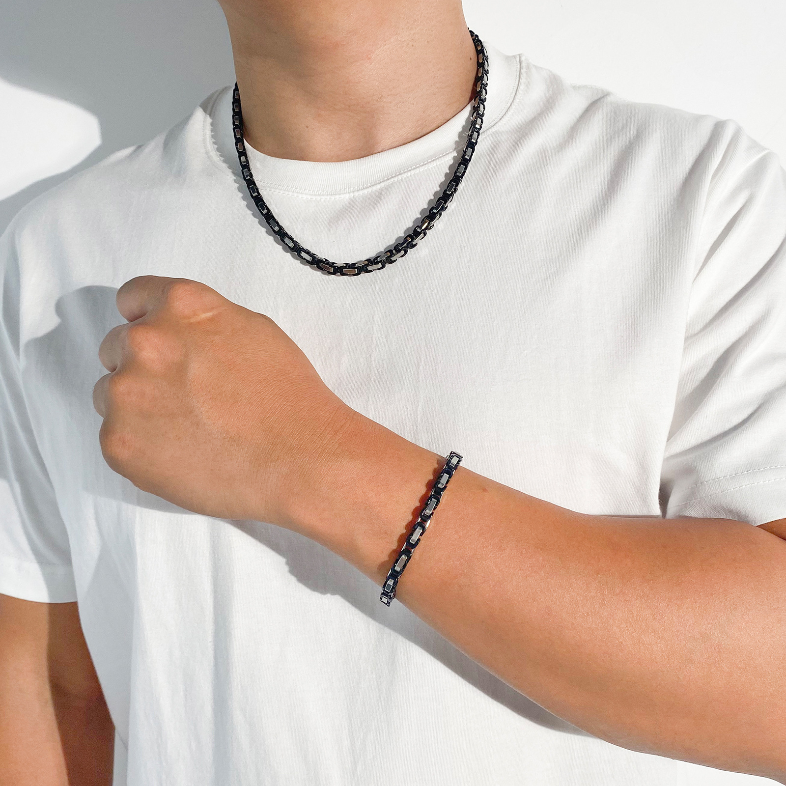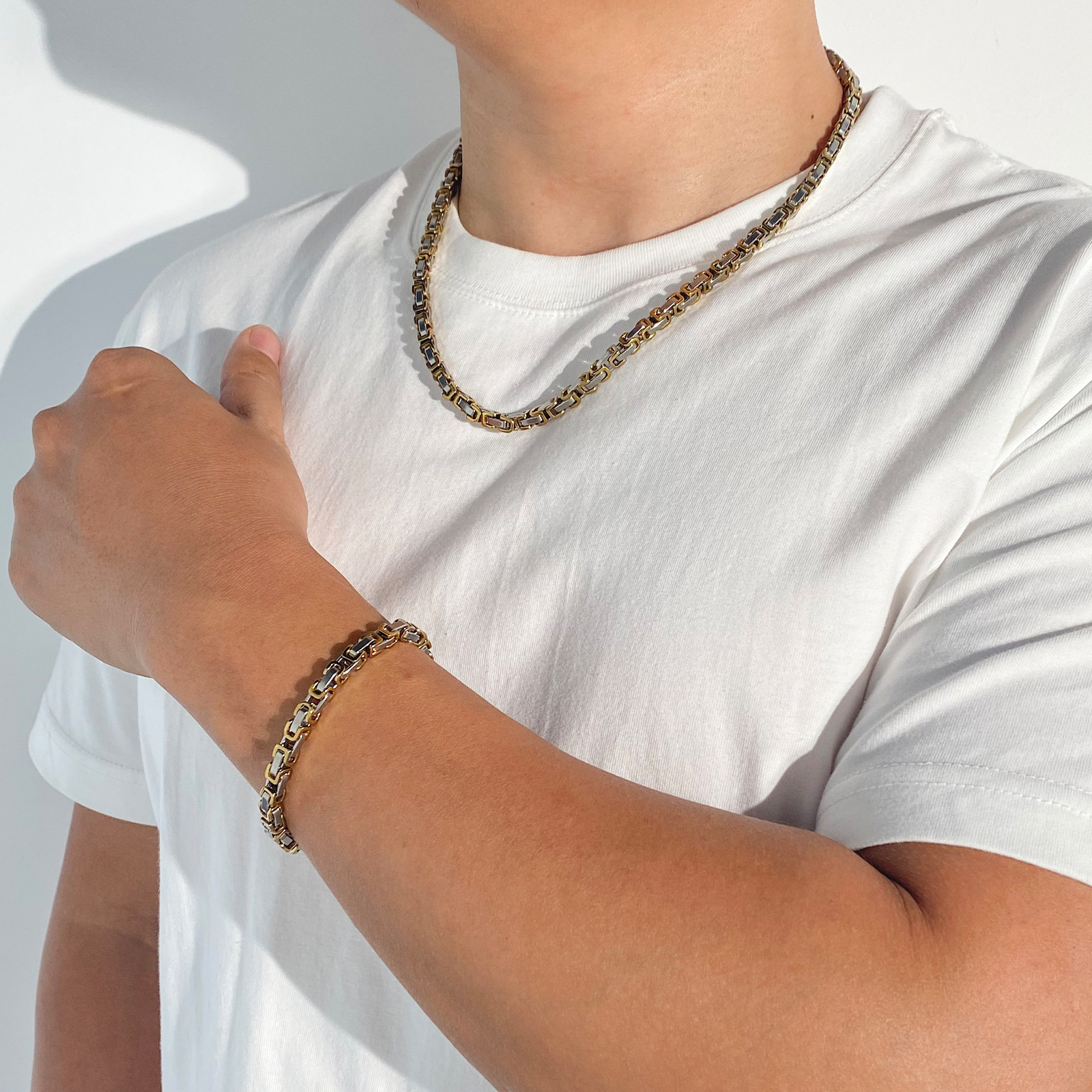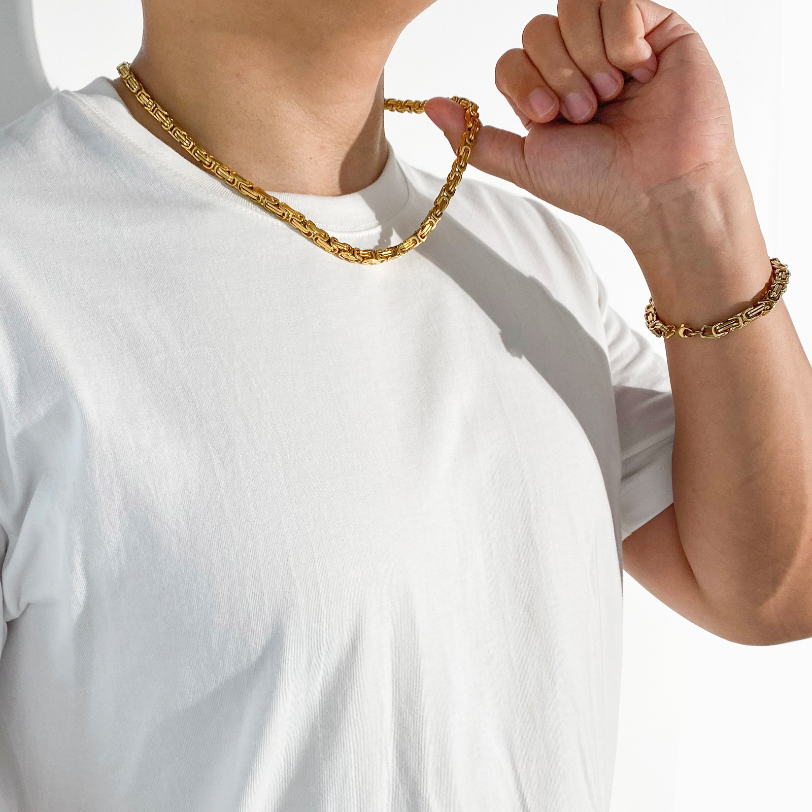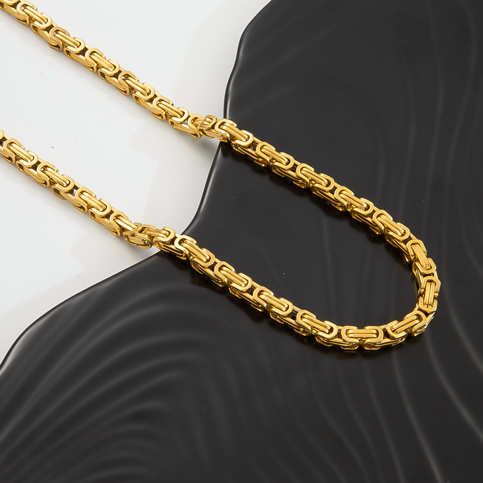 产品名称:供应欧美热销不锈钢帝王链时尚简约拜占庭手链项链饰品配链套装