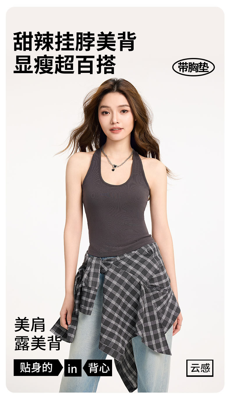 【7A抗菌リヨセル】涼しい胸パッド付きキャミソール レディース 万能ホルターネック美背中トップス(プライベート)