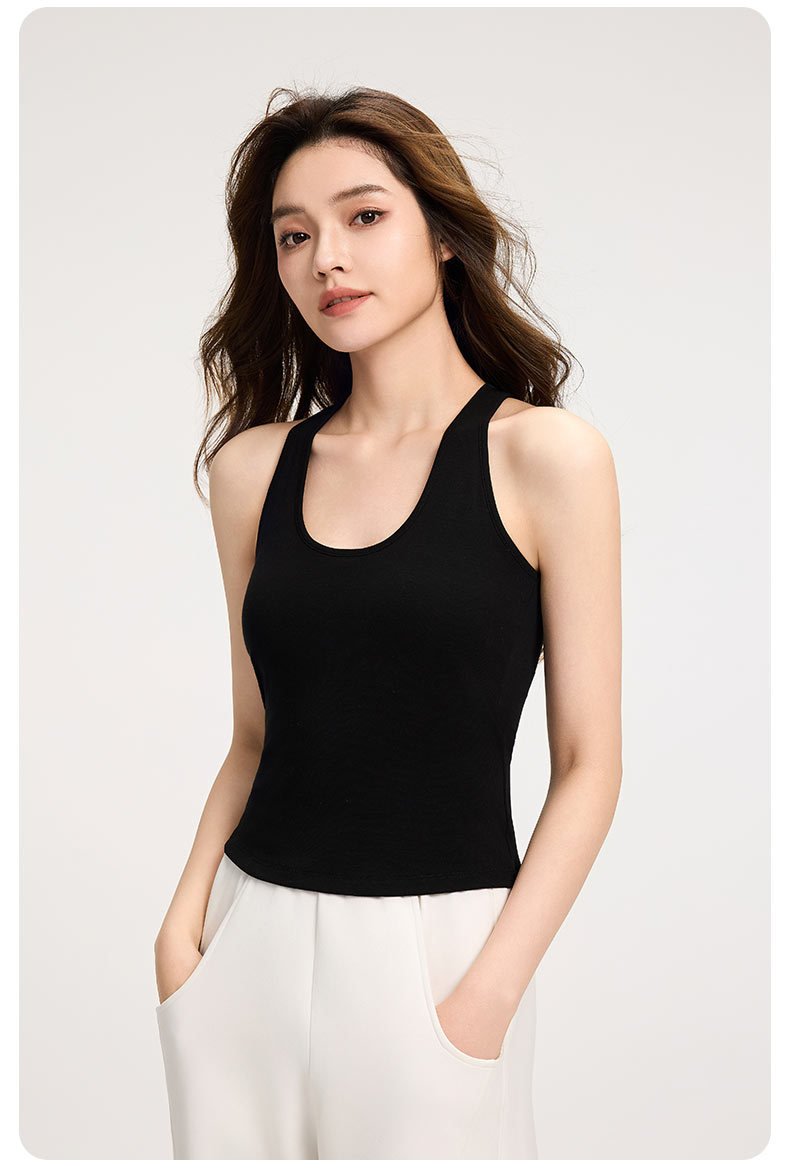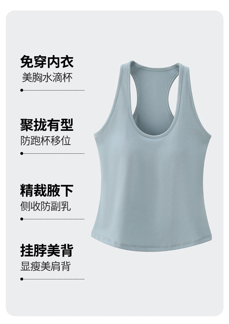 【7a抗菌ライゼル】涼感胸パッド付き夏の方襟純色カジュアルスポーツ袖なしワイド肩ひもベスト