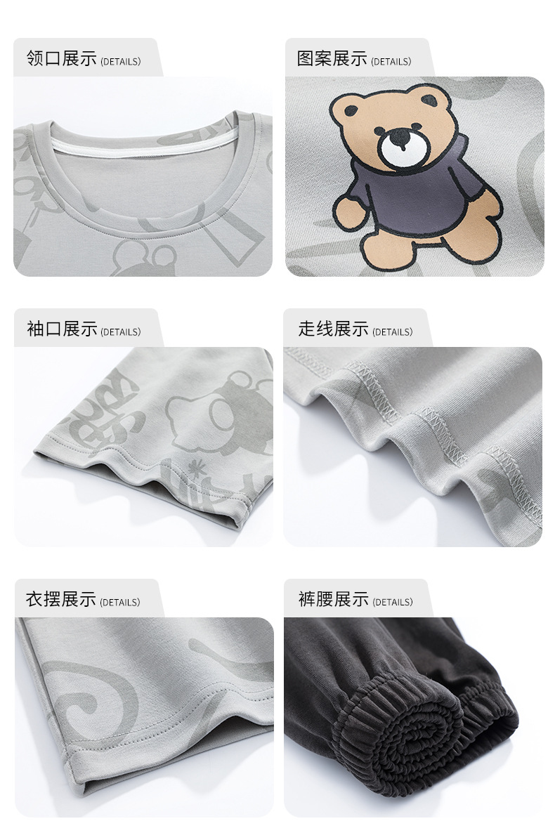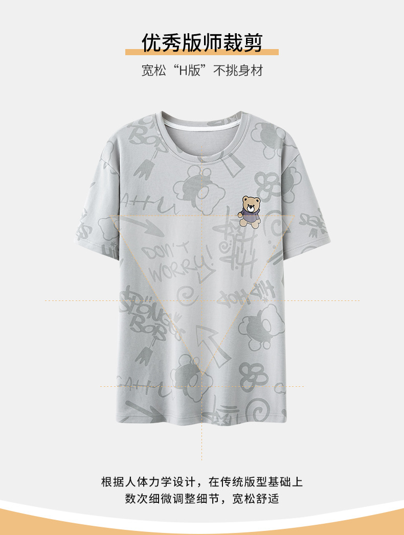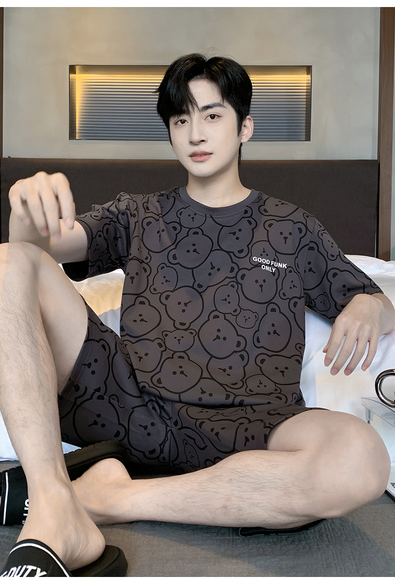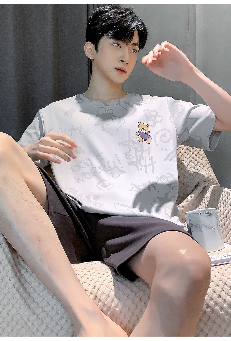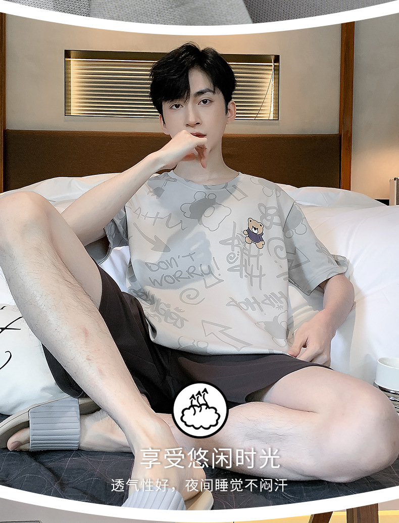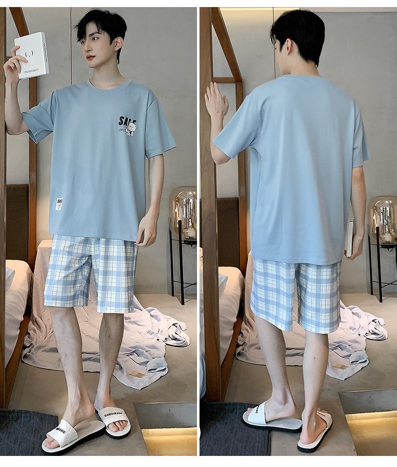男性パジャマ夏の新しい丸首の大きいサイズの半袖半ズボンセットの漫画の青少年の部屋の服の2セットの男性