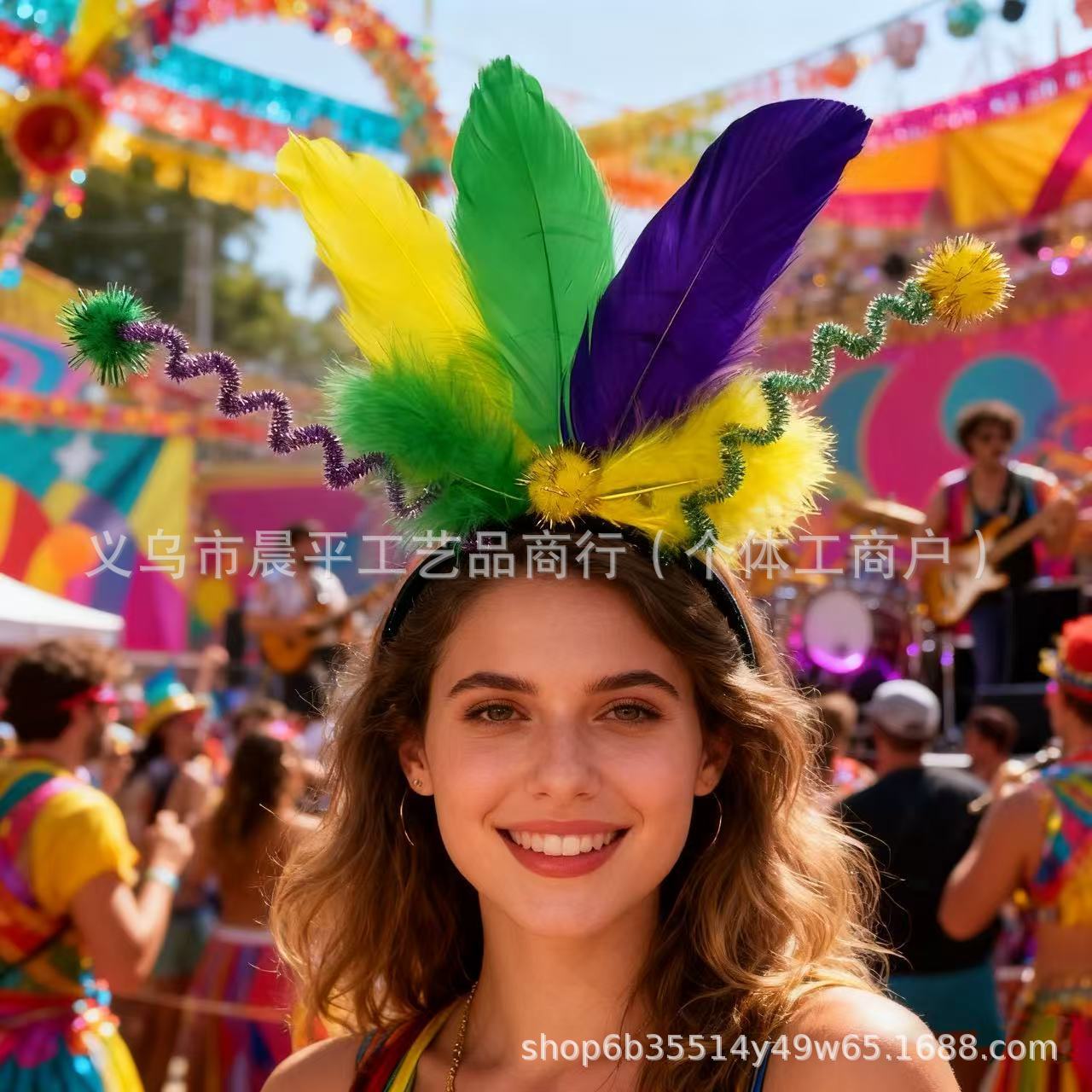 热销狂欢节黄绿紫羽毛头箍 mardi gras节日派对发箍头饰