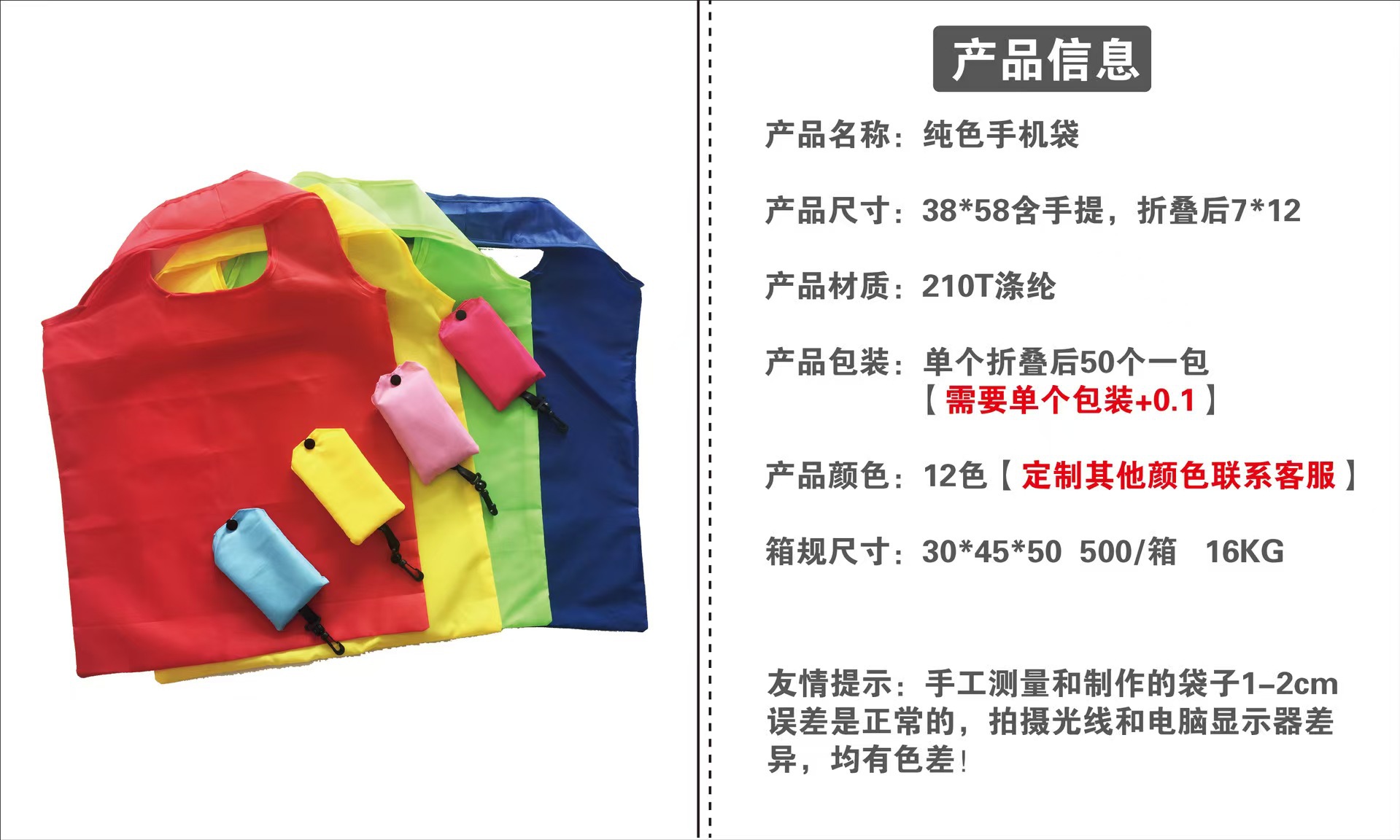 現物210Tポリエステル純色携帯バッグスーパー折り畳みレジ袋携帯折り畳み可能環境保護袋広告プレゼント
