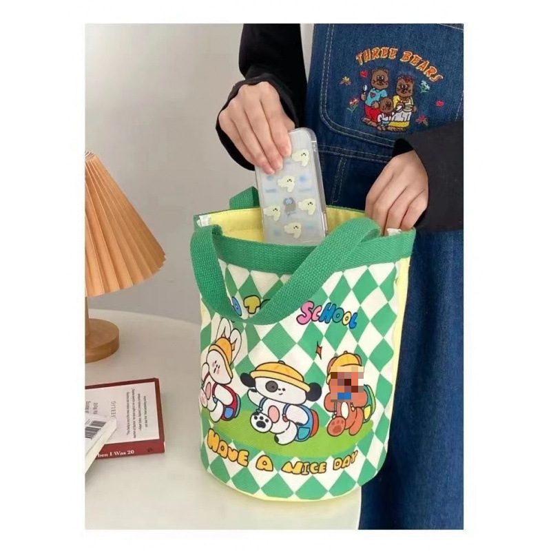 かわいいイラストバケツポータブル韓国風ガールハートママランチバッグ仕事用小さなバッグ子供っぽい落書きキャンバス