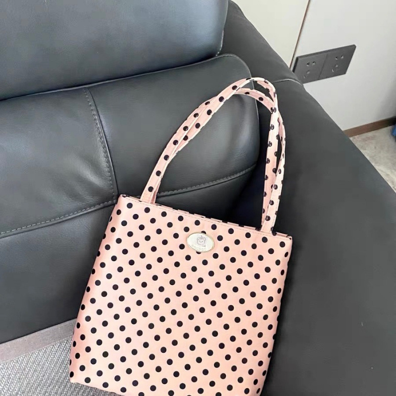 水玉ショルダーバッグ、スモールフレッシュピンクナイロンミニハンドバッグ、甘くてかわいい2025新しい軽量トートバッグ