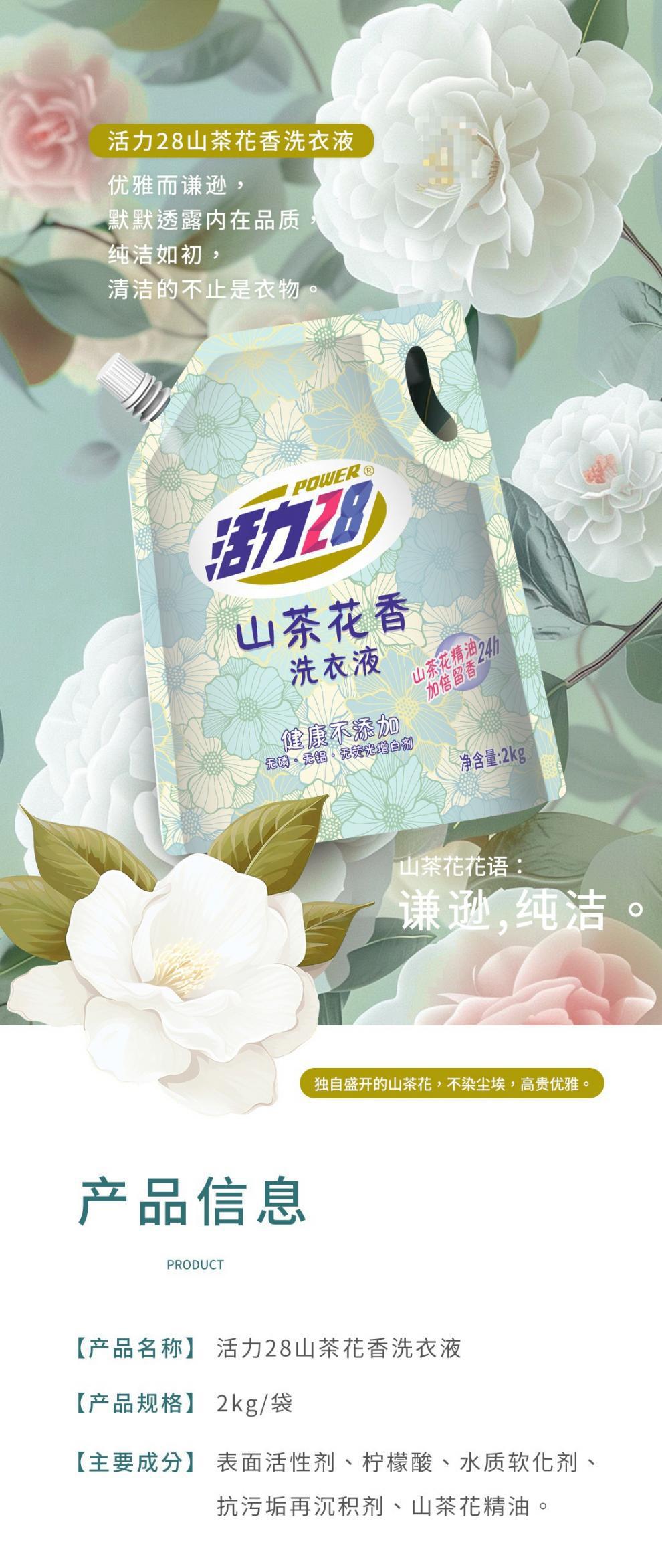 活力28ツバキ花香留香洗濯液2kg * 1袋の持続的なアロマ汚れ保護色洗濯液