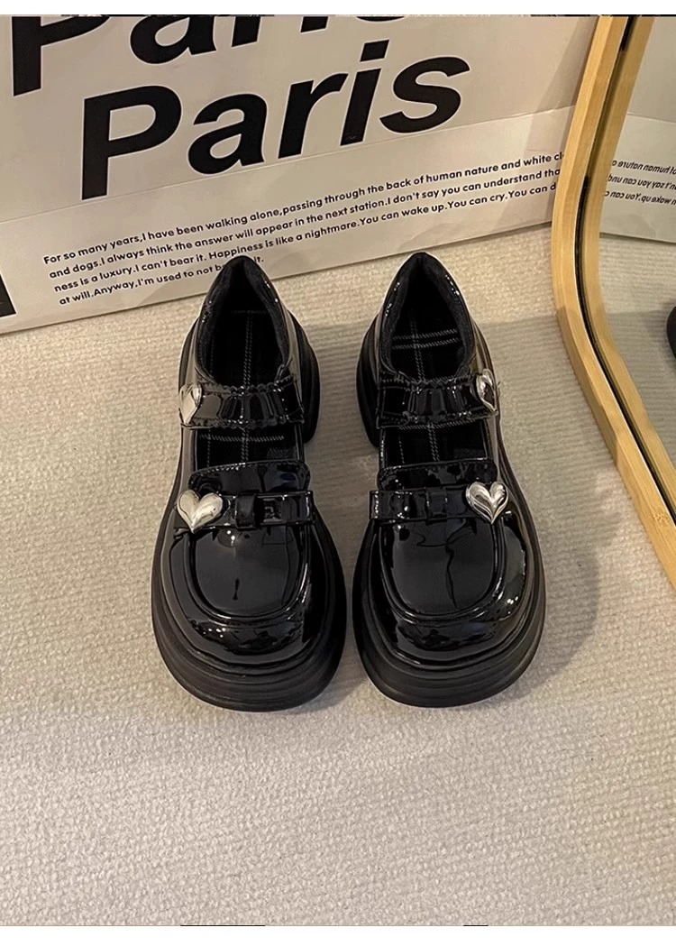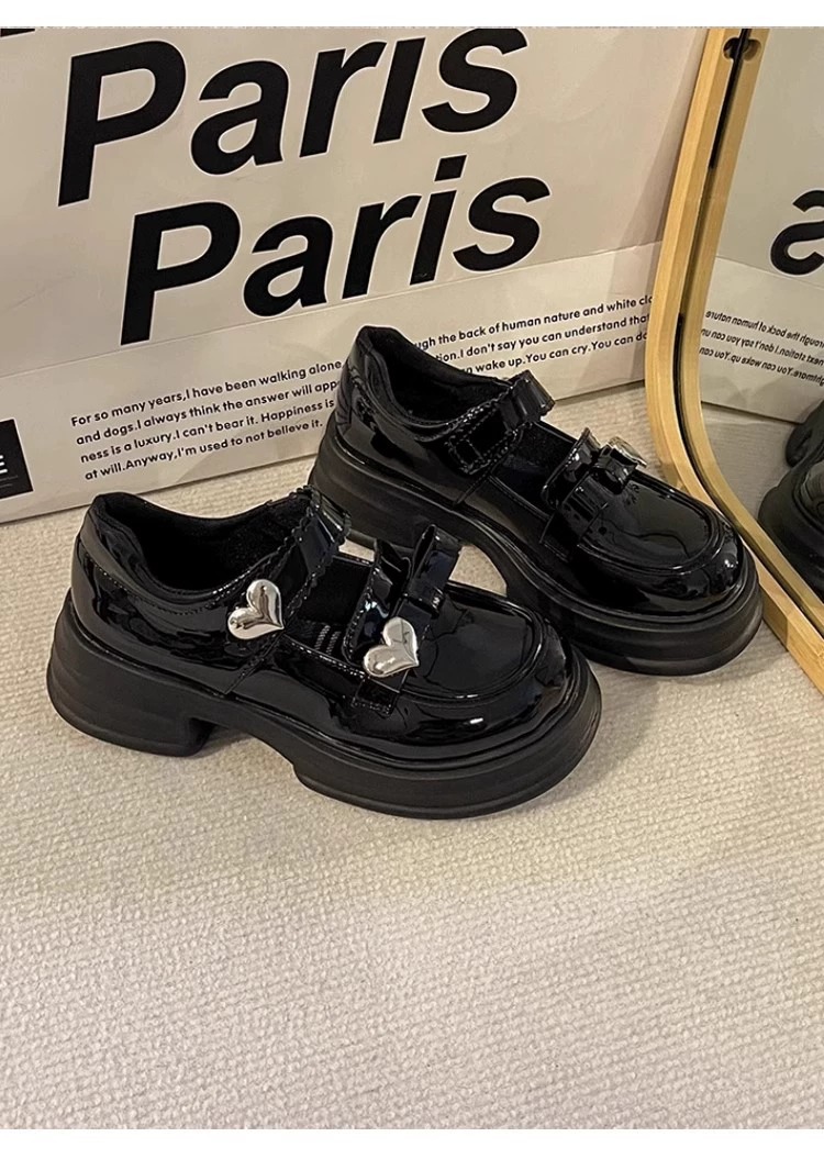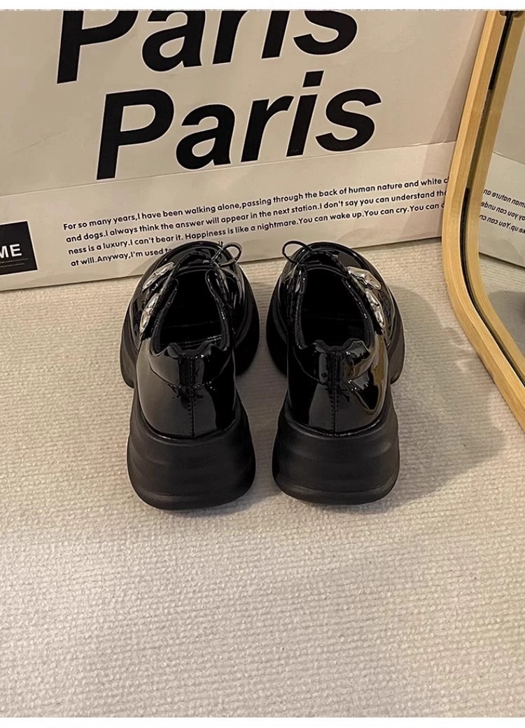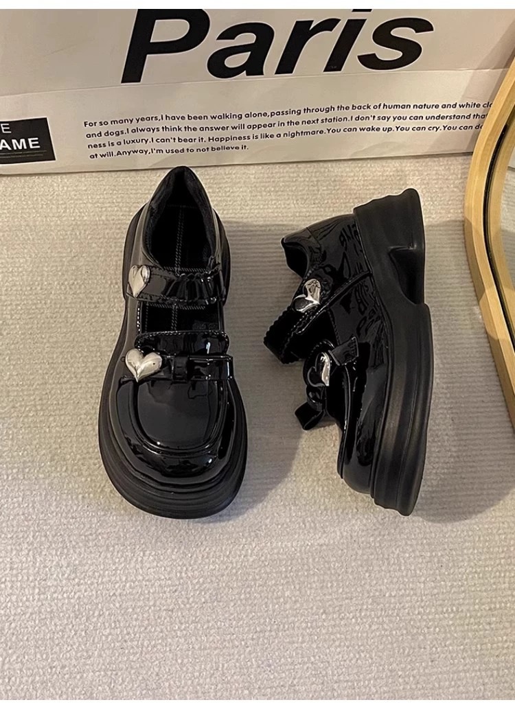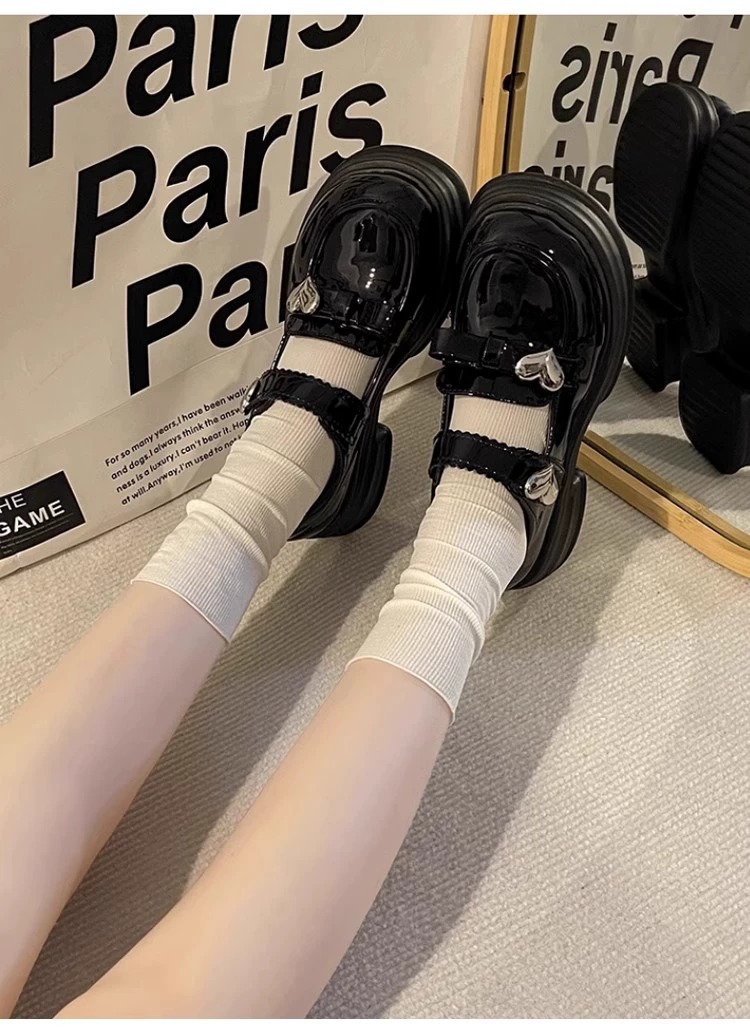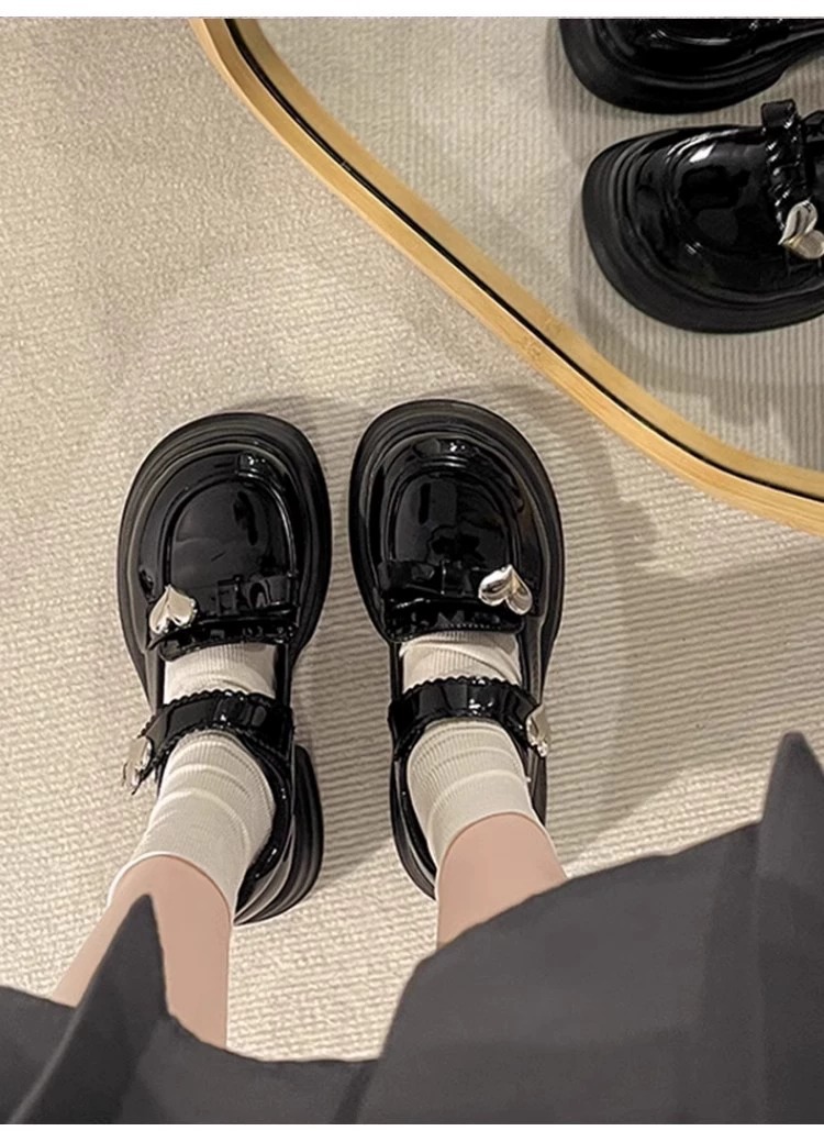 女の子の黒い靴が靴を演出しています。