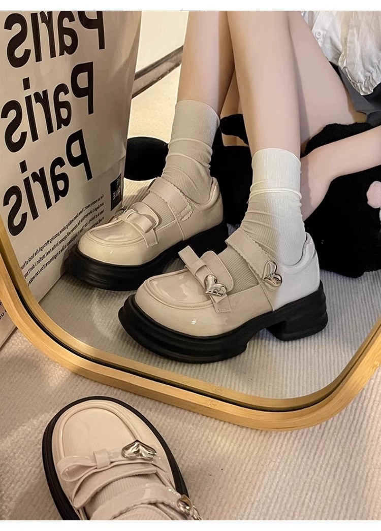 女の子用黒革靴 2026春秋新作 ソフトソール プリンセス風リボン付き シンプル スリッポン ローファー