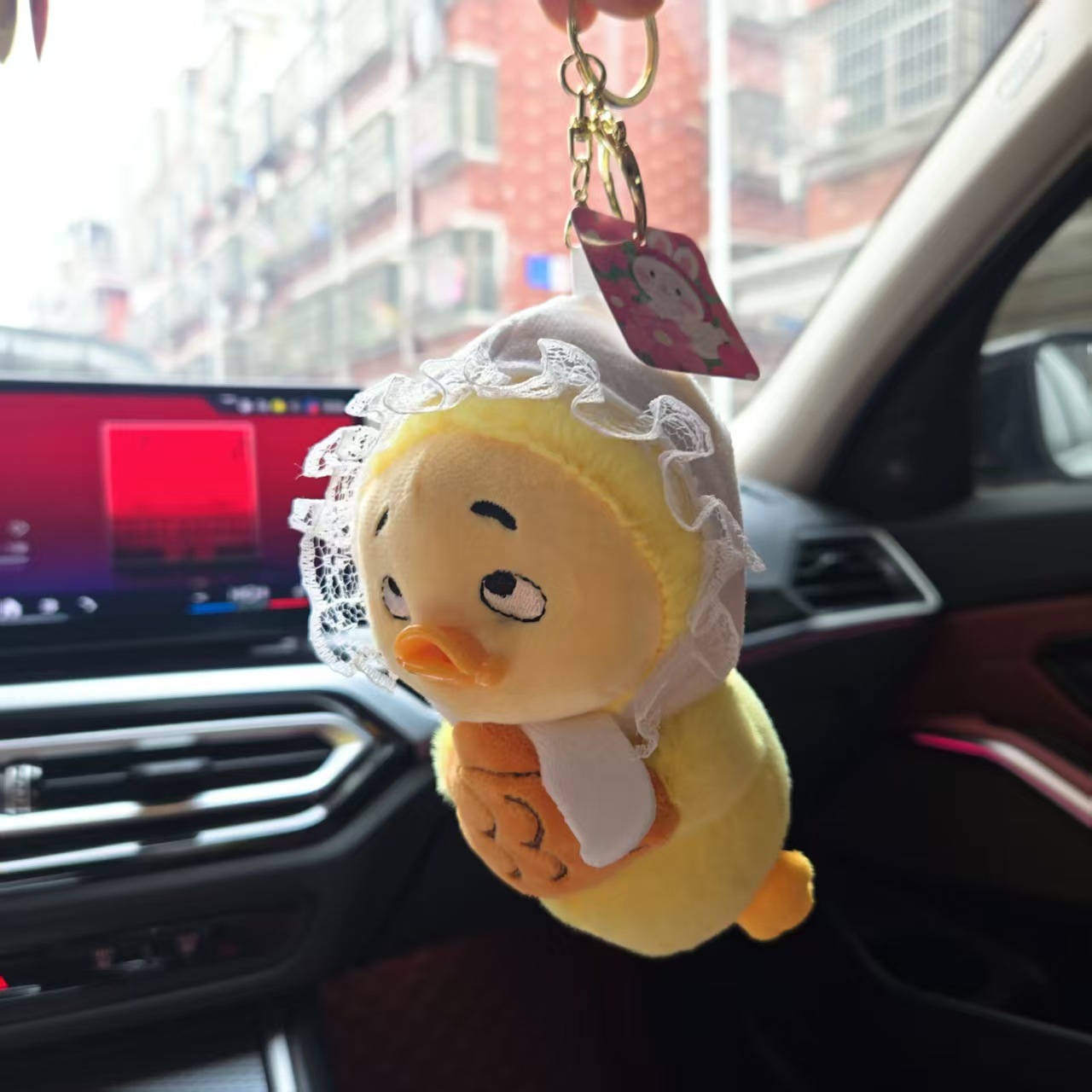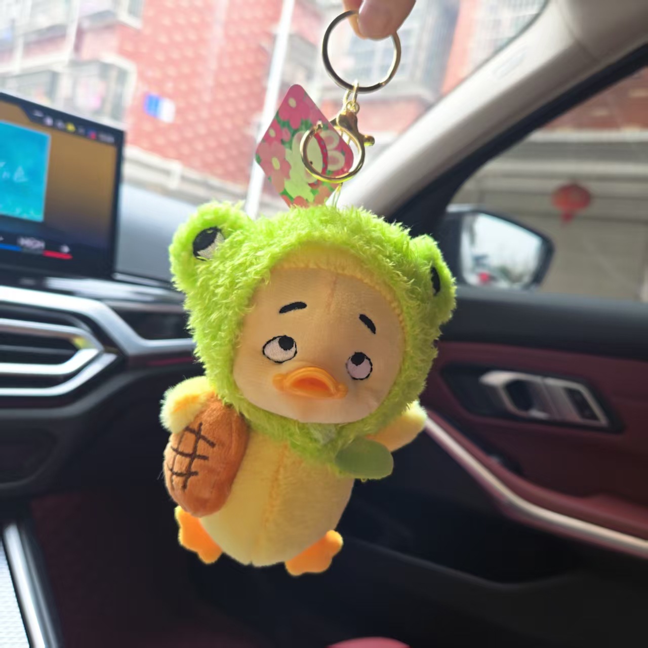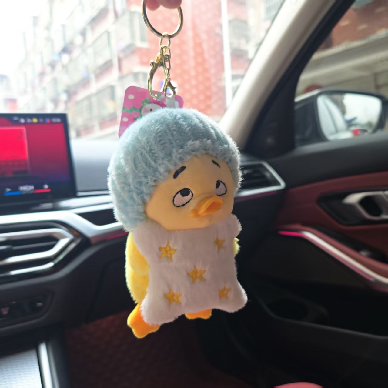 仕事が面倒だね、かわいい動物のぬいぐるみキーホルダー、バッグ飾り、ミニチュア人形、いたずらっ子アヒル