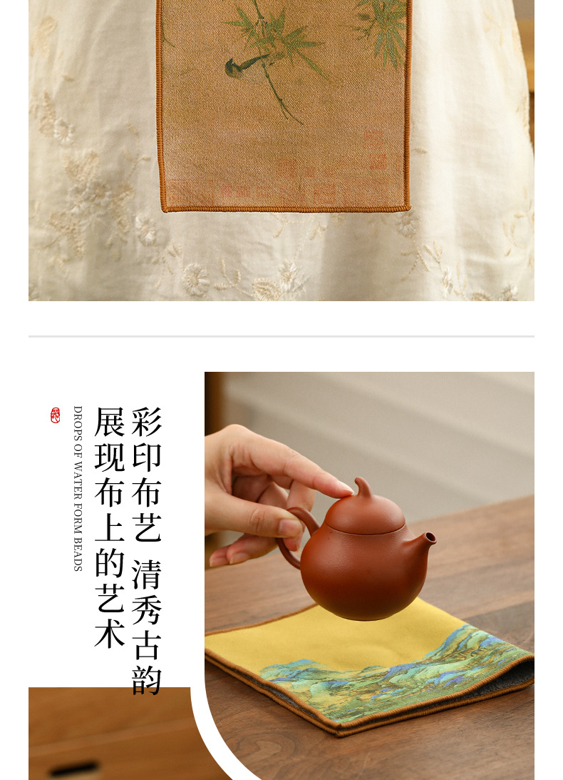 超吸収性増粘ティータオル、ベルベットティータオル、吸水性絵画タオル、綿麻ティータオル、超吸収性ティーテーブル、茶道具、鹿革