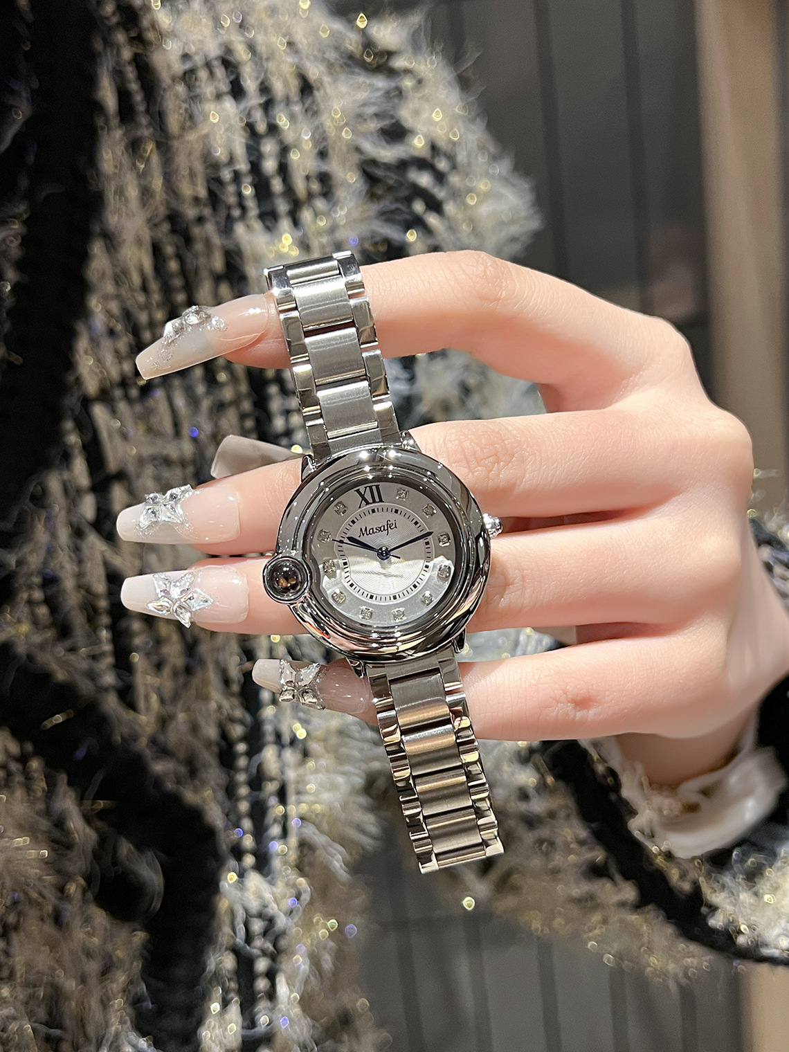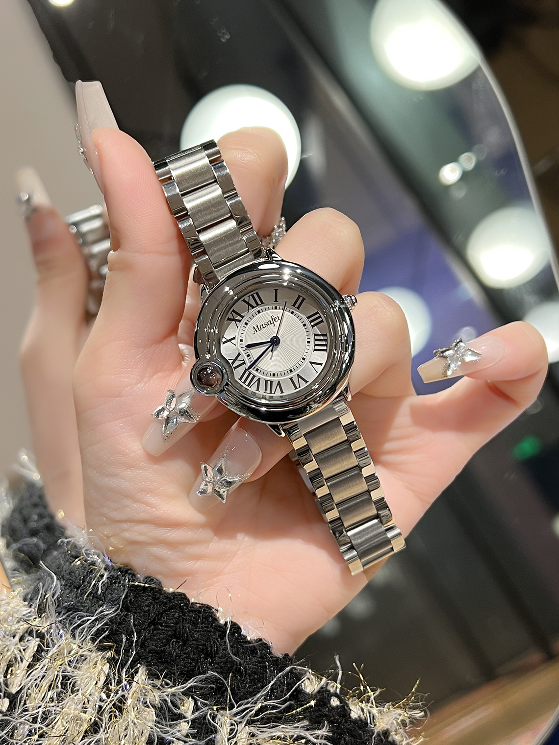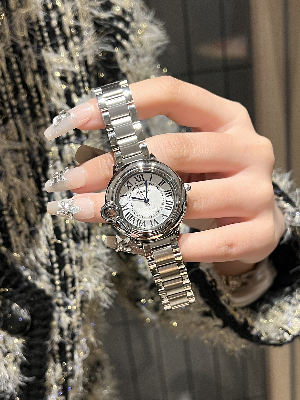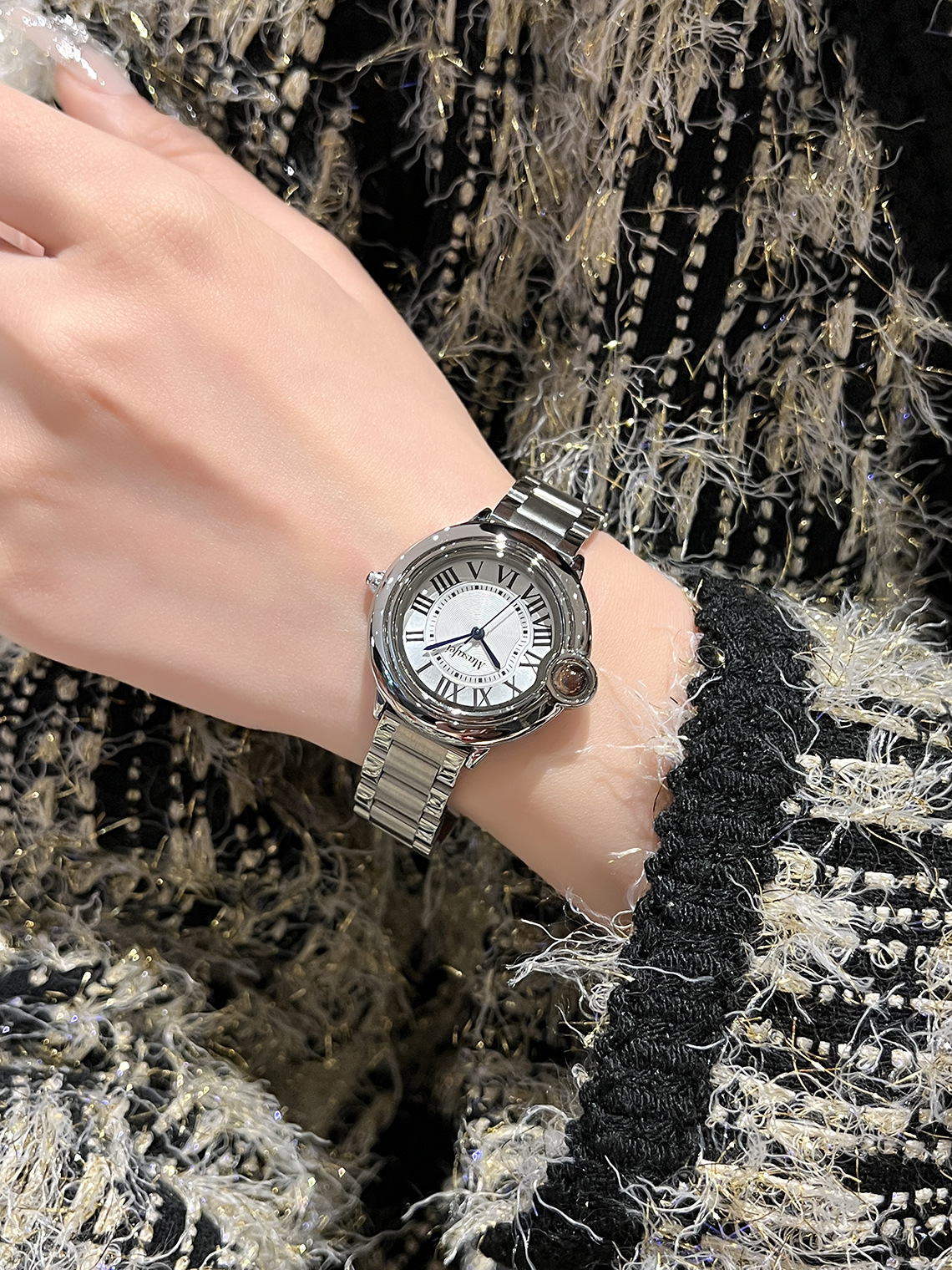 クォーツ時計カルティエ Y ブルーバルーンシリーズ ステンレス鋼魚眼ガラス レディース クォーツ時計 スチールストラップ レディース