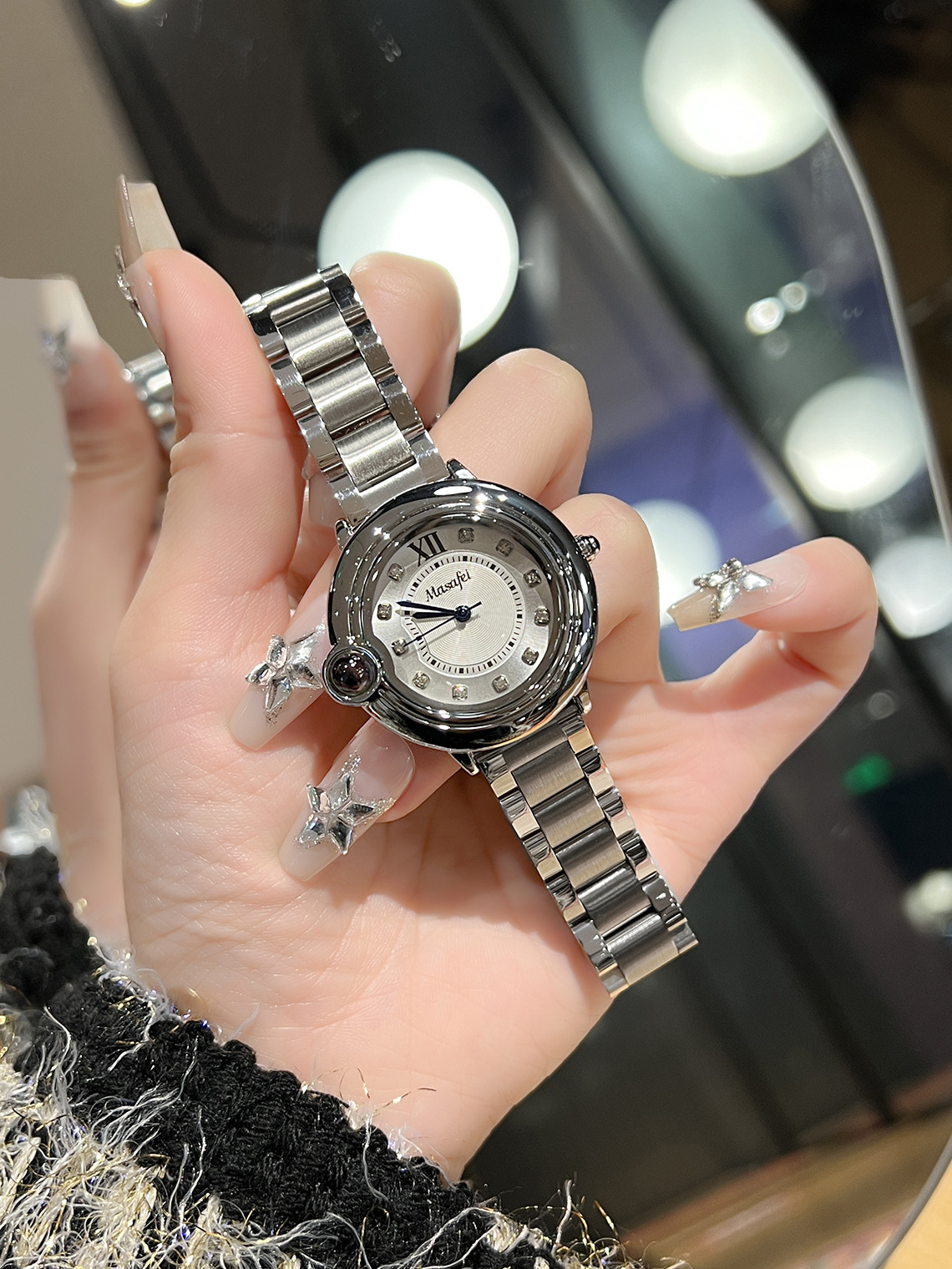 クロスボーダーの女性の時計の樽型のドリルの鋼帯の満天の星はドリルのファッションの個性の対外貿易の卸売りのファッションの女性の時計を入れます。