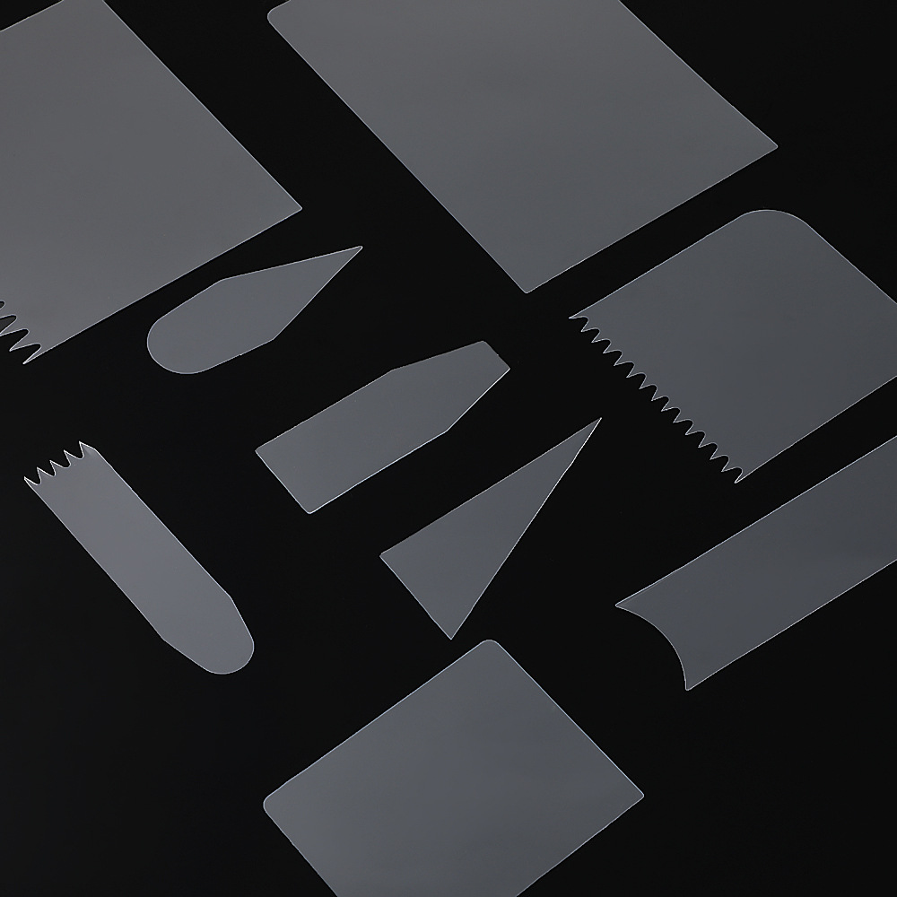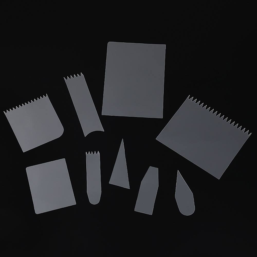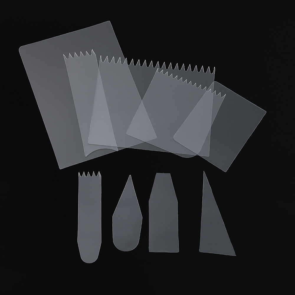 新型透明プラスチック製ソフトスクレーパー、ベーキング9点セット、防塵ケーキデコレーションツールセット、スクレーパー、メーカー卸売