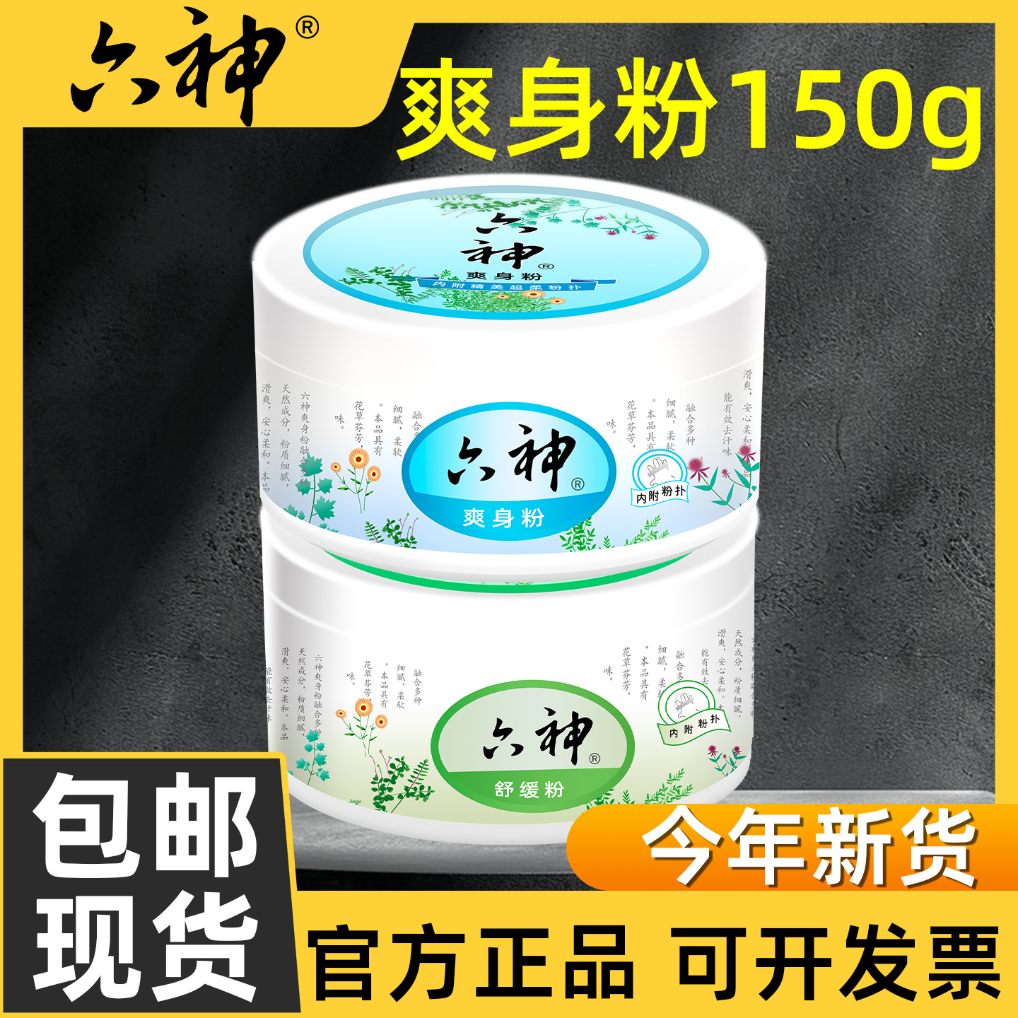 六神爽身粉舒缓粉150g大人用成年人用香体粉大容量吸汗干爽批发