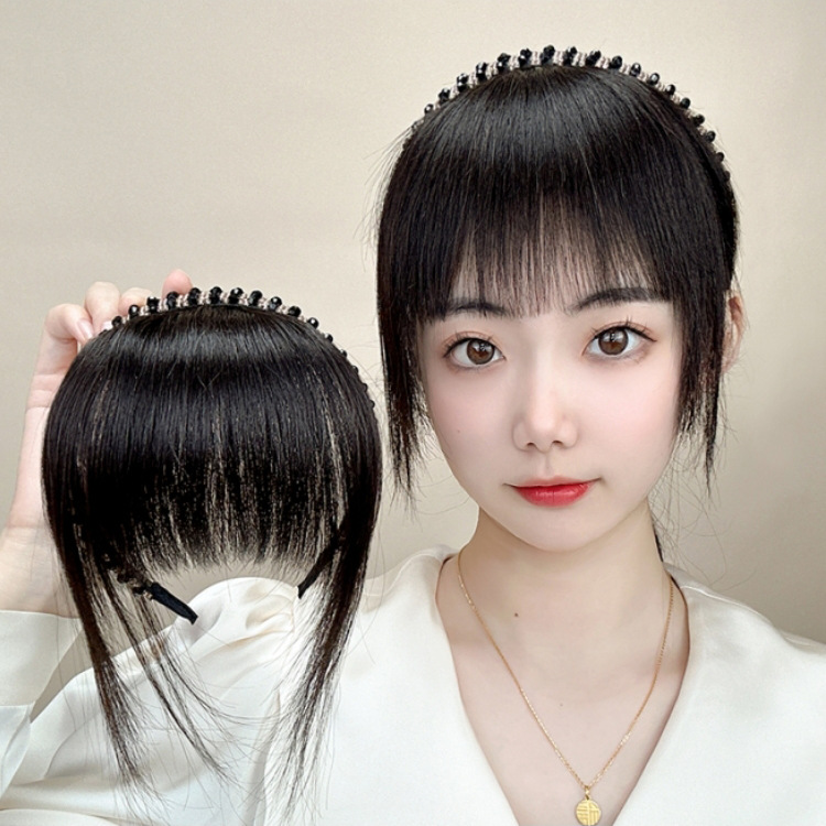 发箍刘海一体式真发辫子碎遮白发头帘前额假发片女头顶补发片增发