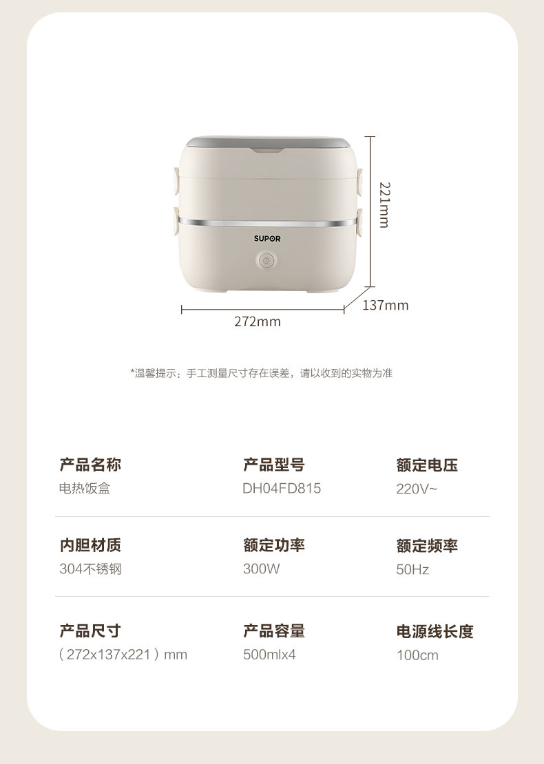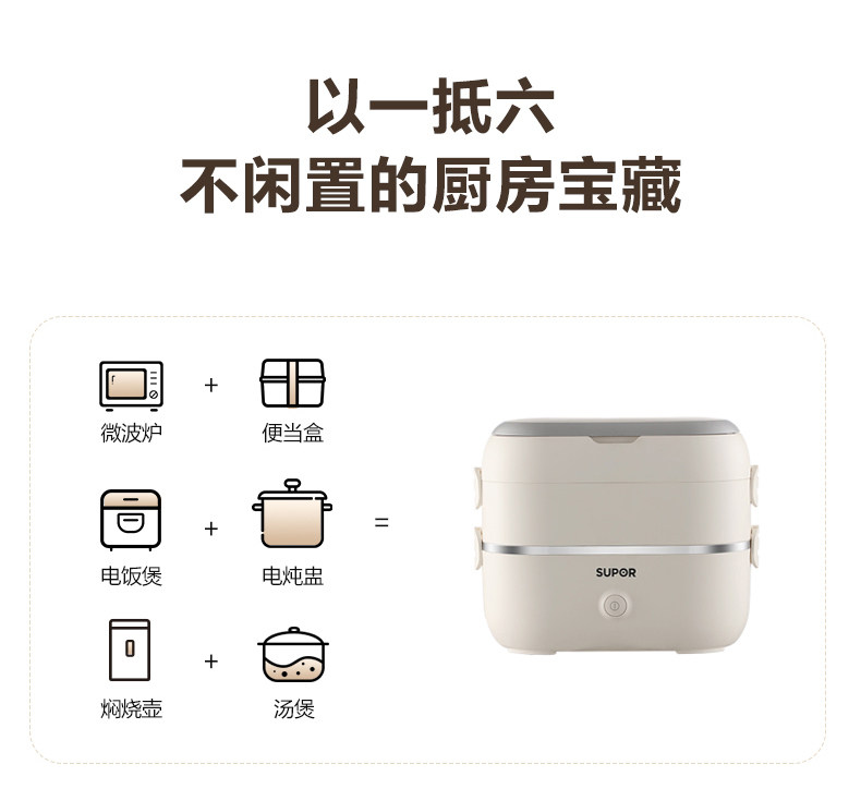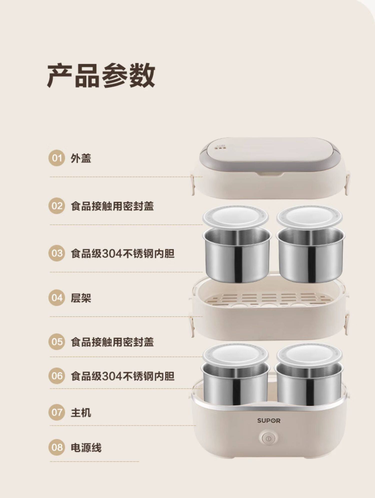 严选-苏泊尔电热饭盒可插电多功能蒸煮便当盒上班族带饭便携加热