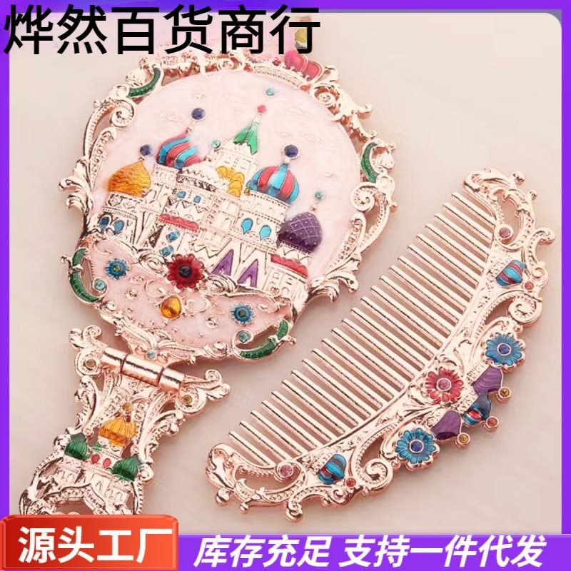 ロシアインスタイルミラーミラーコームセットポータブルハンドルハンドヘルド化粧鏡金属ポータブルレトロかわいい