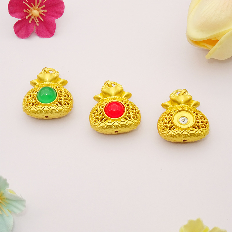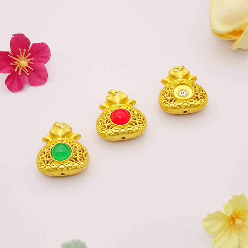 金店の同じタイプの古法沙金エナメルカラーの透かし彫りの花の糸は福袋のペンダントの高い保色の福袋の卸売りを象眼します。