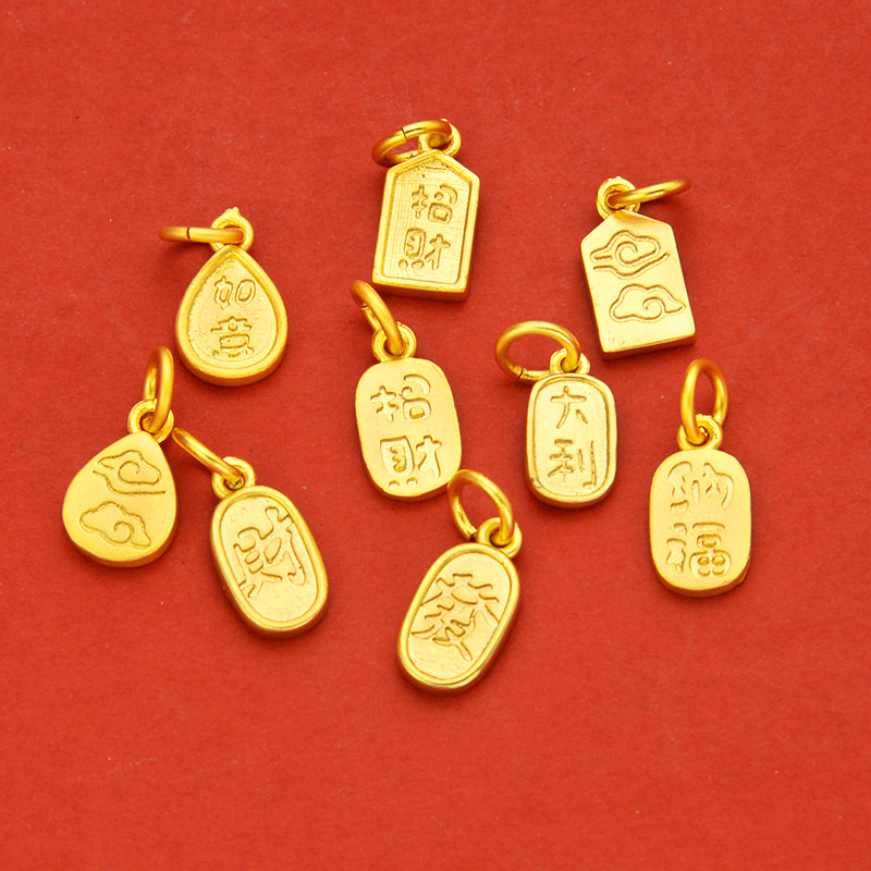 保色古法沙金饰品配件diy古法金招财纳福如意挂件手链文玩挂件