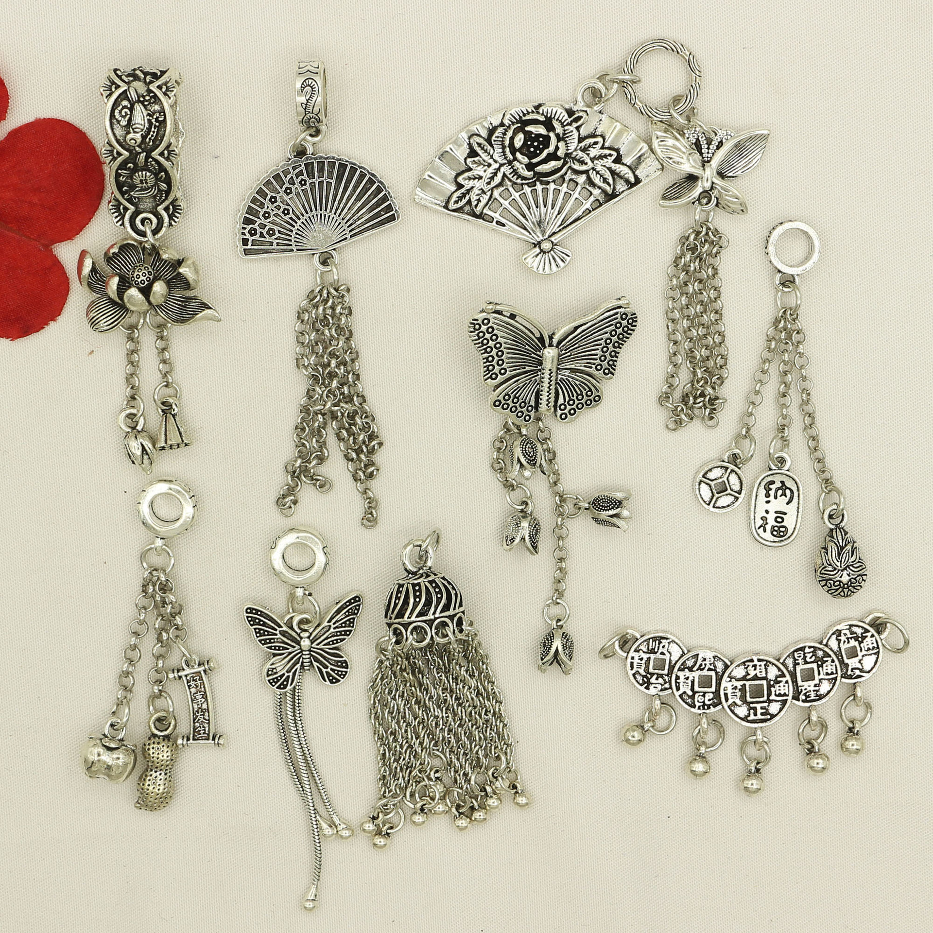 古代アネモネブレスレットアクセサリー安全チェーン diy クリスタルブレスレットアクセサリー蝶チベットシルバータッセルペンダントジュエリー