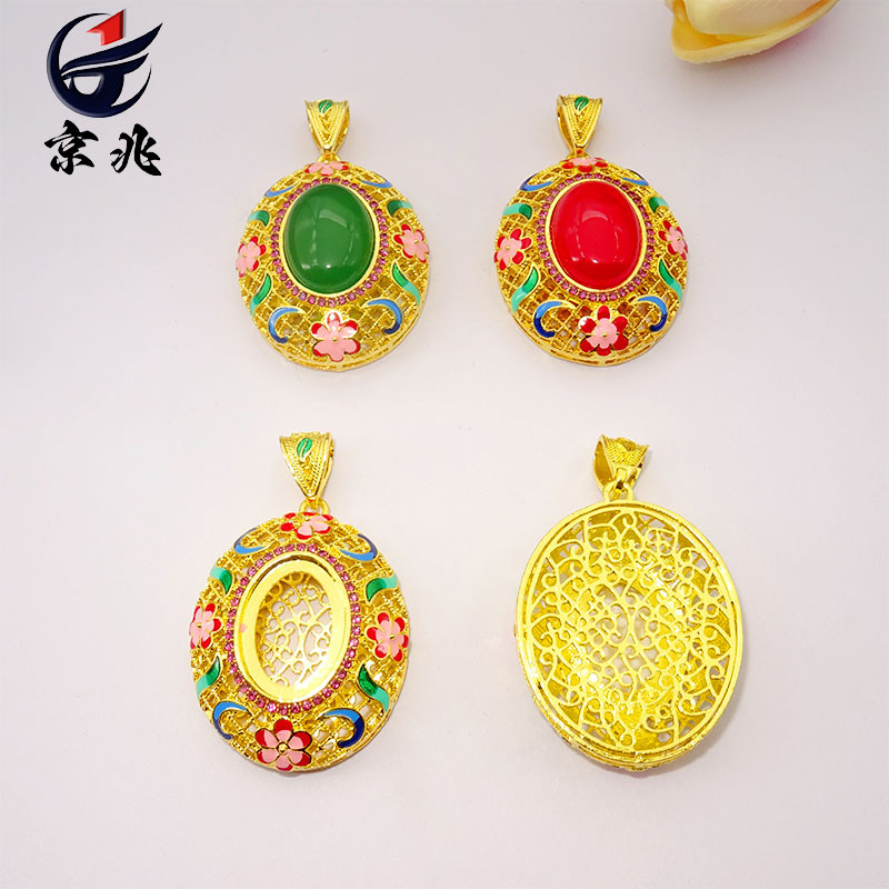 生中継ソース18*25mm卵面に滴油をはめ込んだペンダントdiy景泰青工芸アクセサリーネックレス