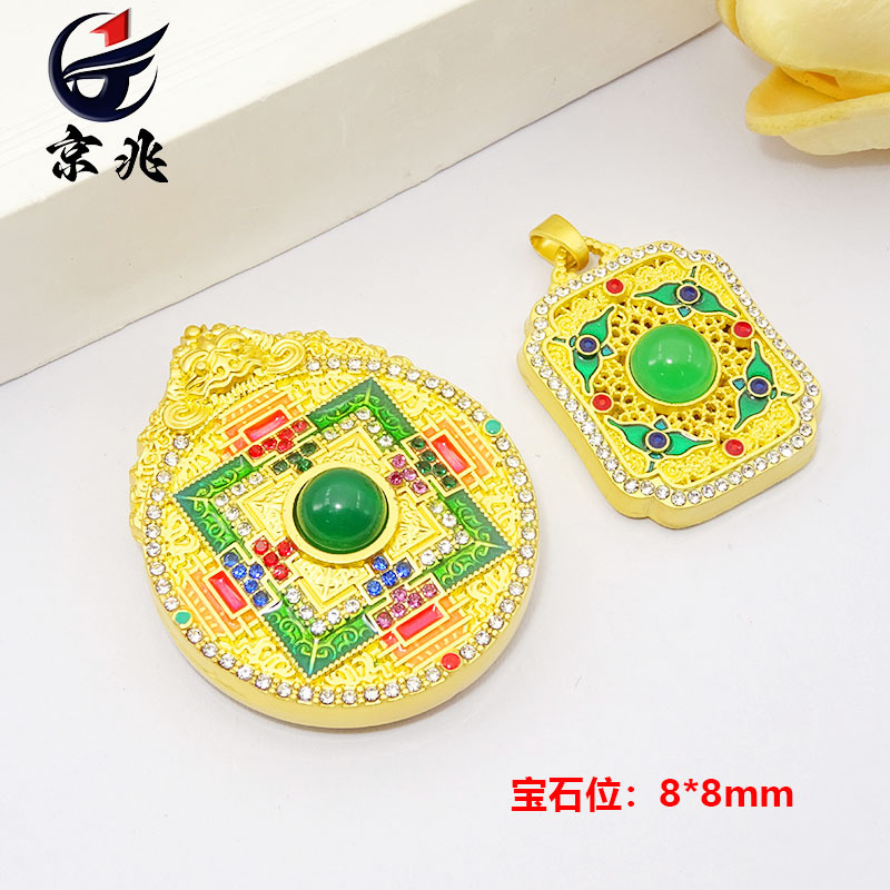 电镀古法金福运坛城毛衣项链四方来财高保色吊坠精致珐琅镶嵌工艺