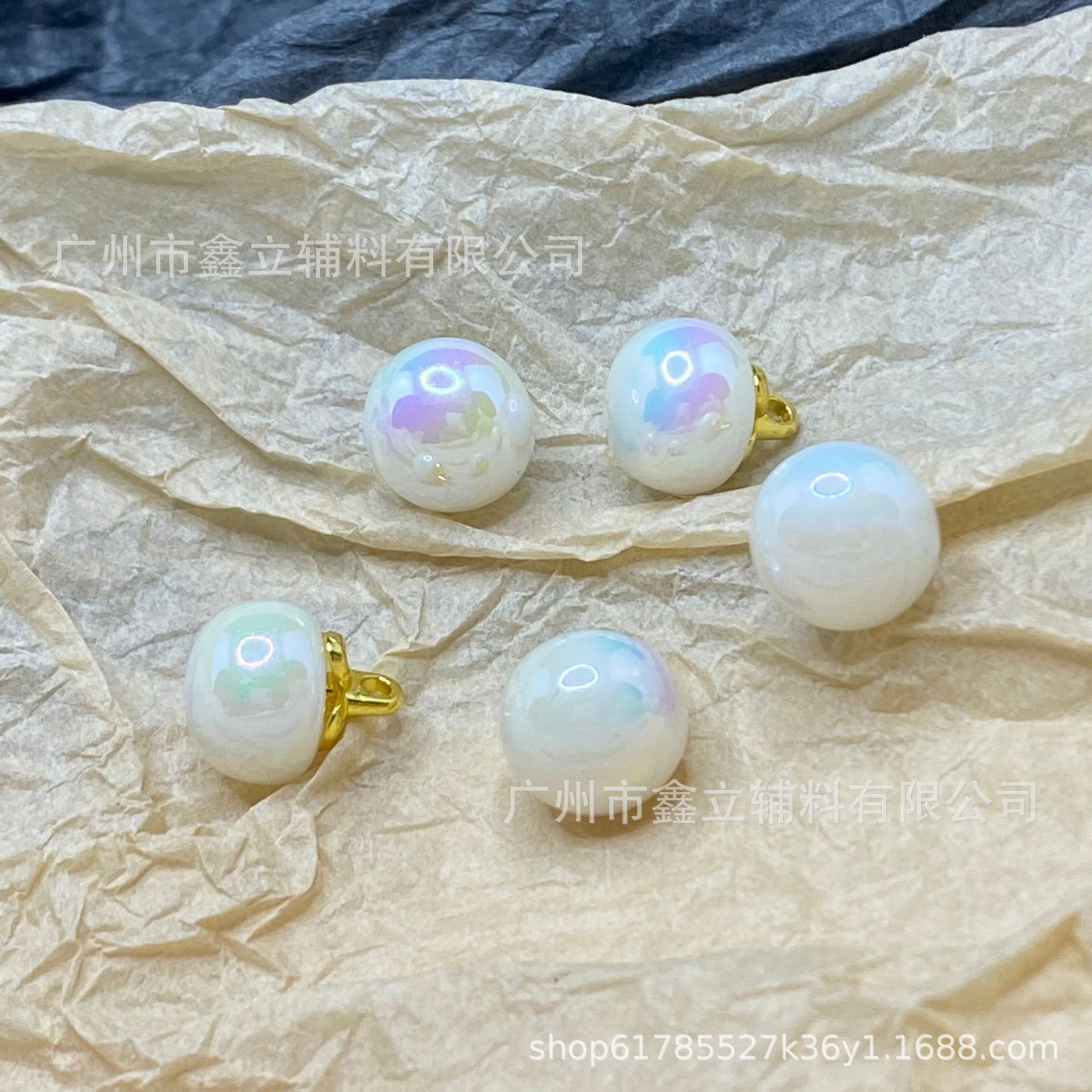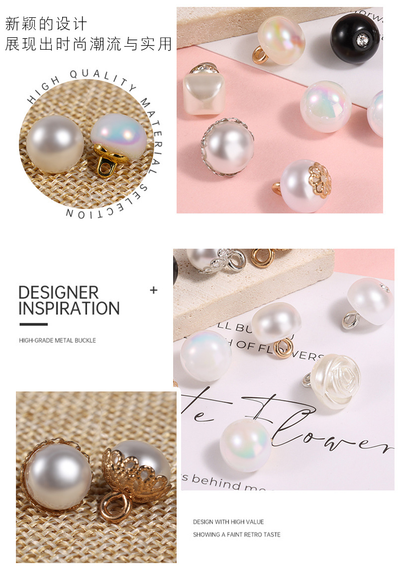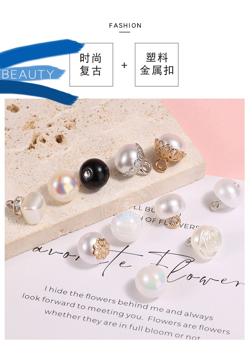炫彩人鱼姬椭圆扣子金属三叶底座纽扣旗袍珍珠衬衣开衫装饰扣