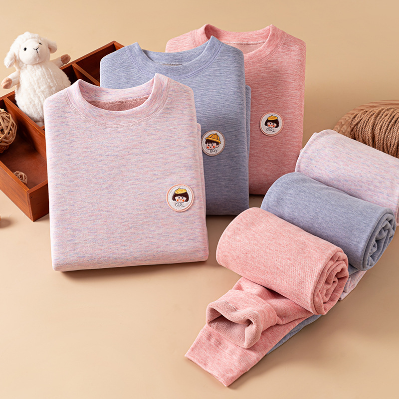 男女童徳パイル保温下着セット秋冬ベルベット厚手児童保温セット骨なし下着