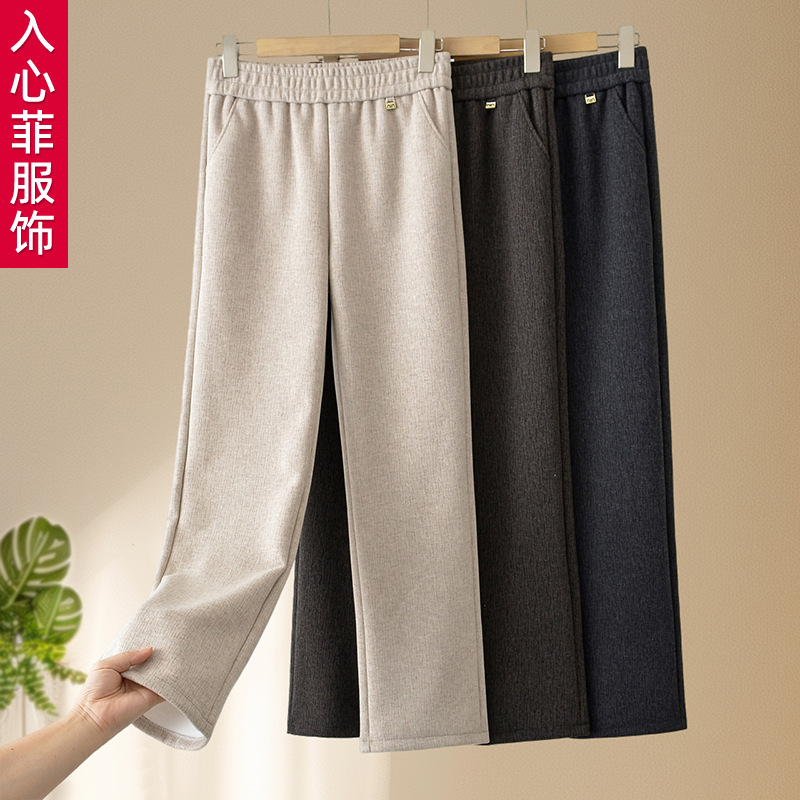 お母さんのズボンの秋冬の毛はカジュアルな広腿のズボンとベルベットの厚い中高年のズボンのおばあさんのズボンのストレートのズボンです。