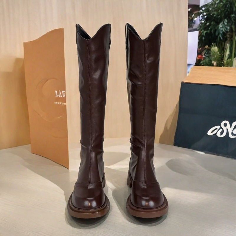 长筒靴女真软皮V口2025新款厚底女靴骑士靴秋冬靴子高跟长靴