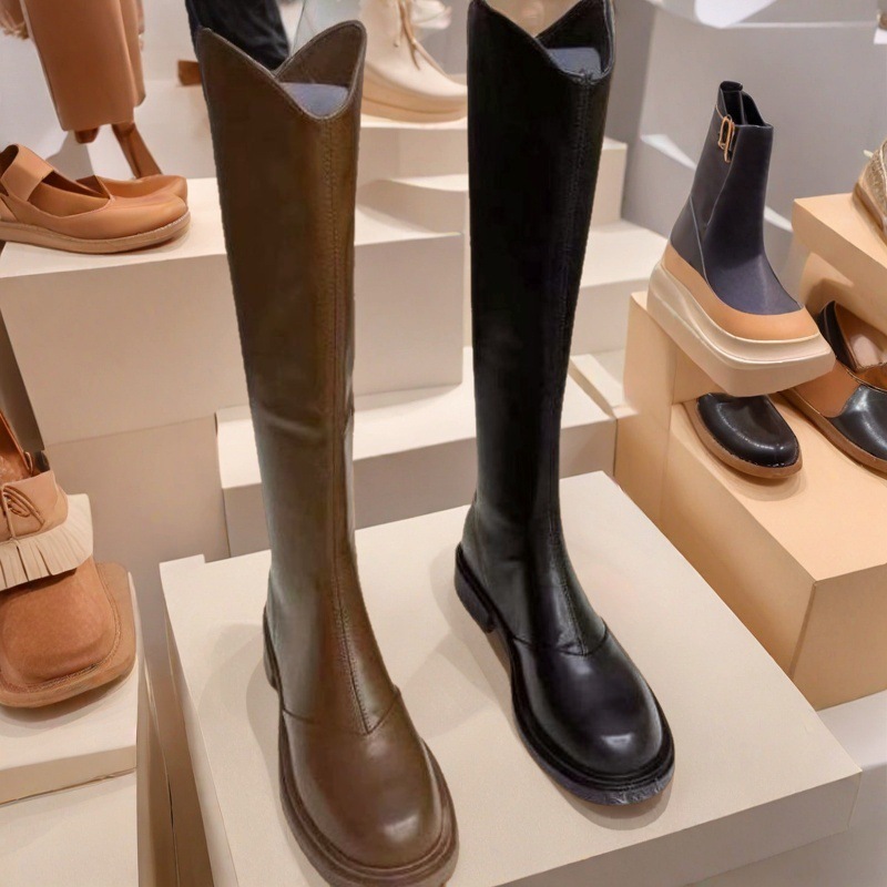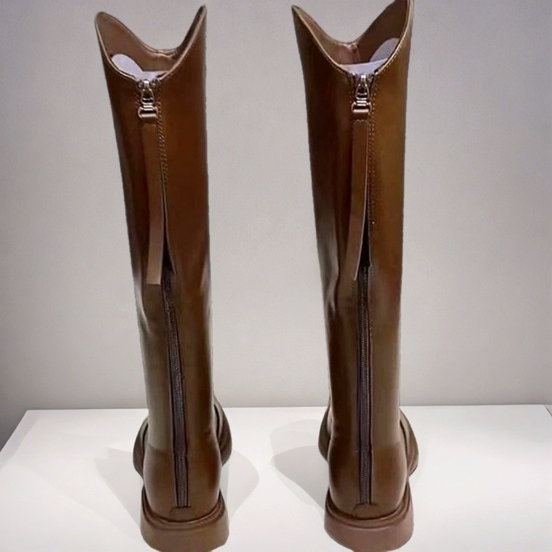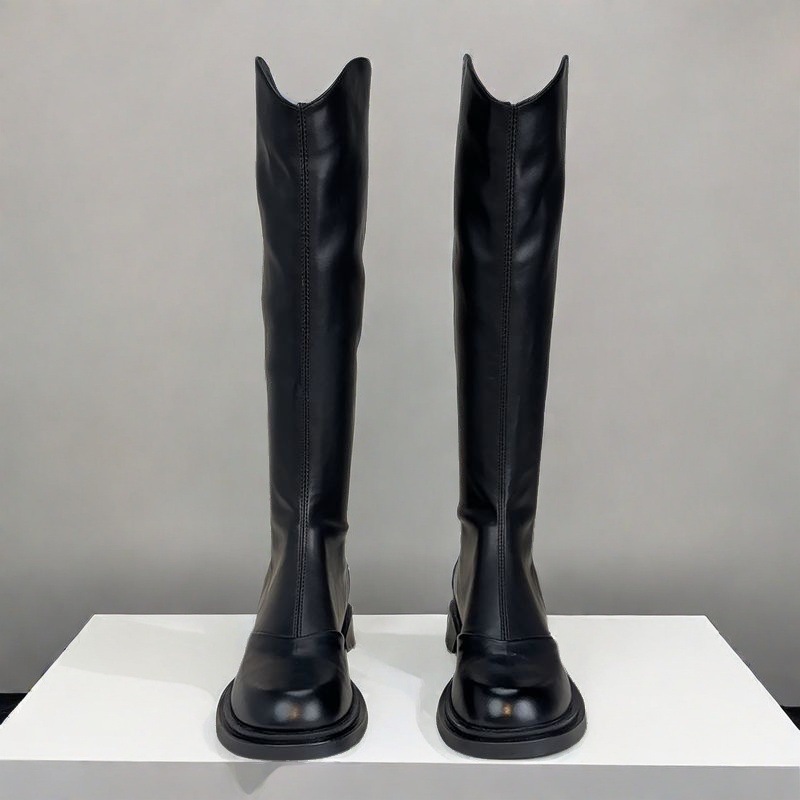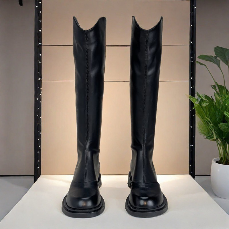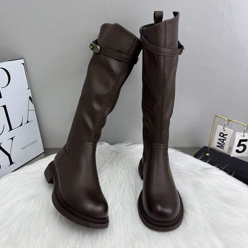 英伦风圆头时尚长靴女2025新款秋冬加绒不过膝气质休闲长筒骑士靴