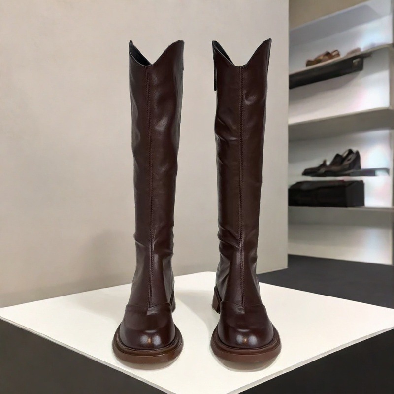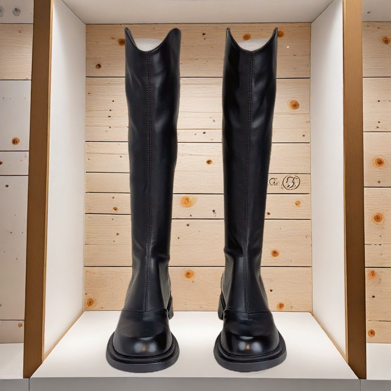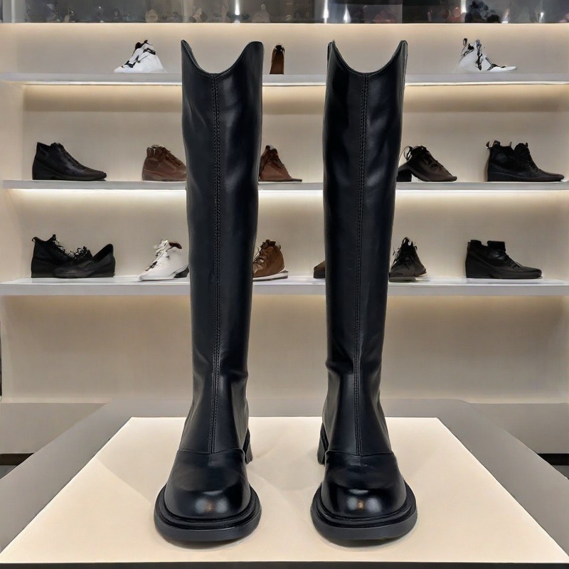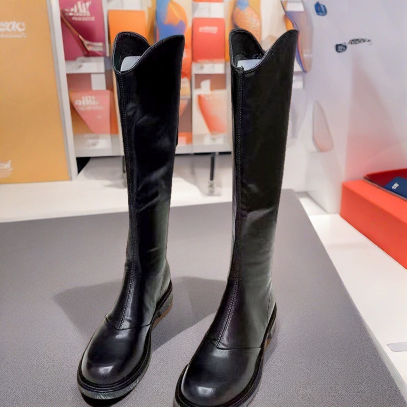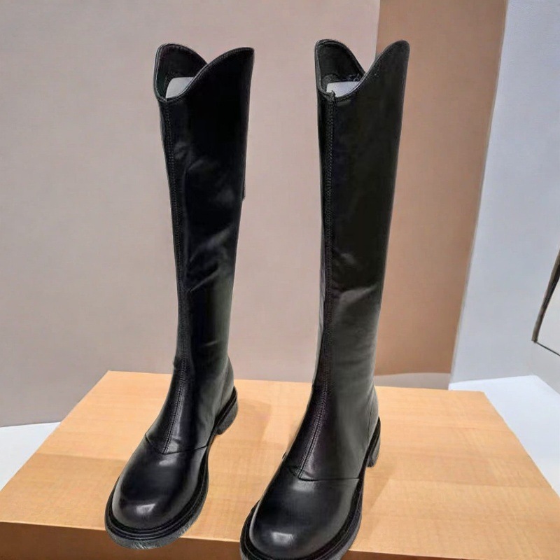 英伦风圆头时尚长靴女2025新款秋冬加绒不过膝气质休闲长筒骑士靴