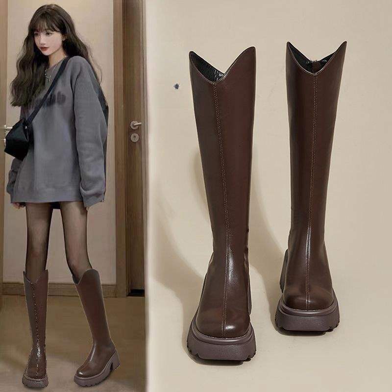 杨幂同款骑士长筒靴2025厚底新款秋冬平底高筒不过膝瘦瘦女士长靴