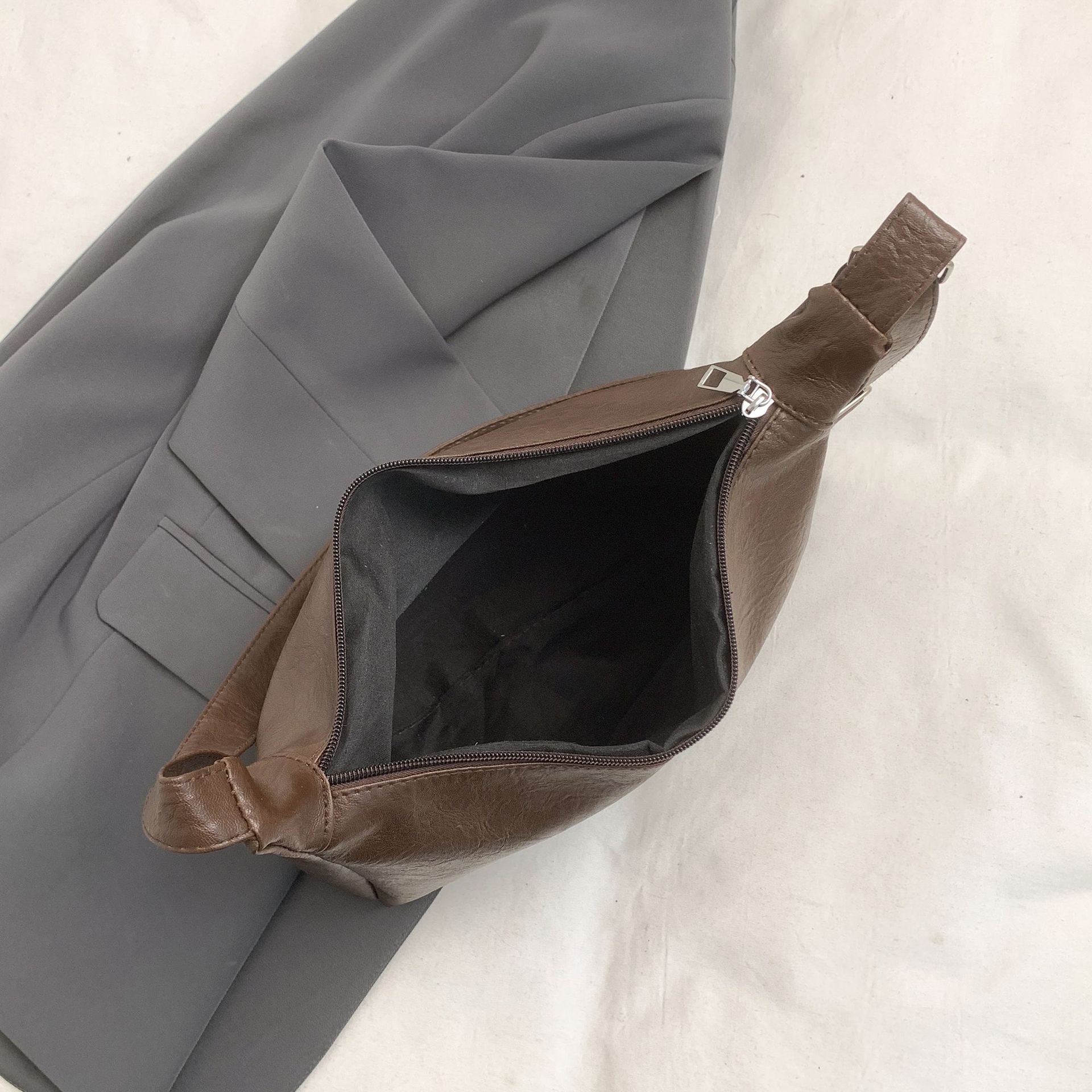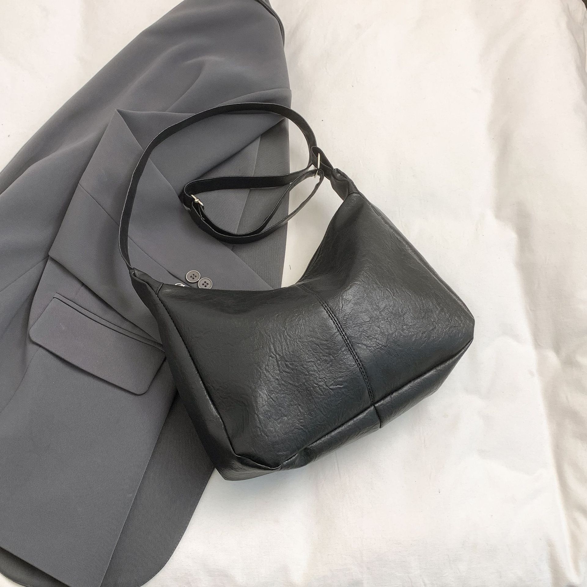 雲のカバンのシングル肩の斜め掛けのしわの脇の下の女子学生のしわの大きいカバン2023秋冬の新型のシングル肩のハンドバッグの女性