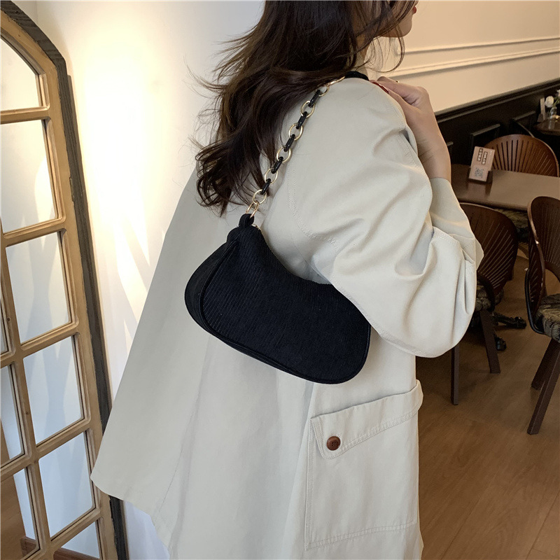 韩版文艺斜挎布包简约休闲条绒布单肩女包纯色百搭手提腋下小包