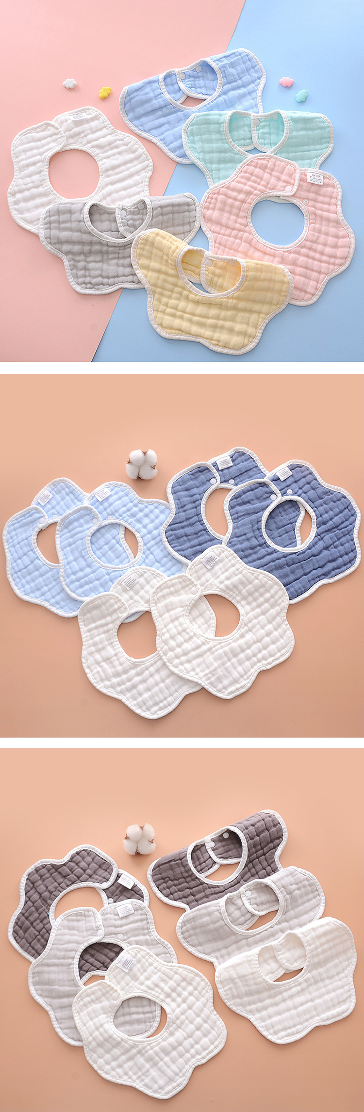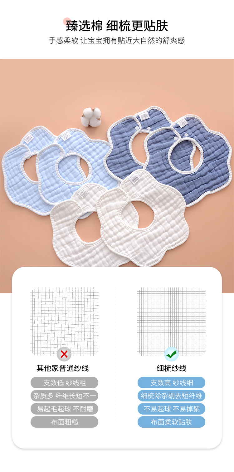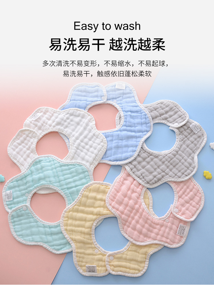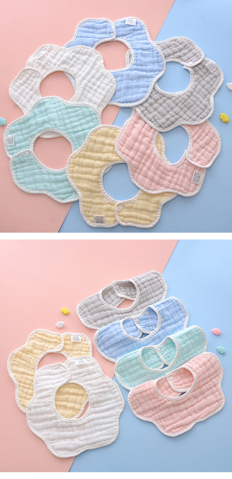 よだれかけ、ベビー用唾液タオル、厚手の吐き戻し防止ベビーよだれかけ、食事用よだれかけ、360度回転、8層ガーゼ、花びら型、通気性